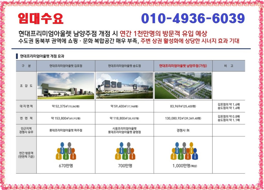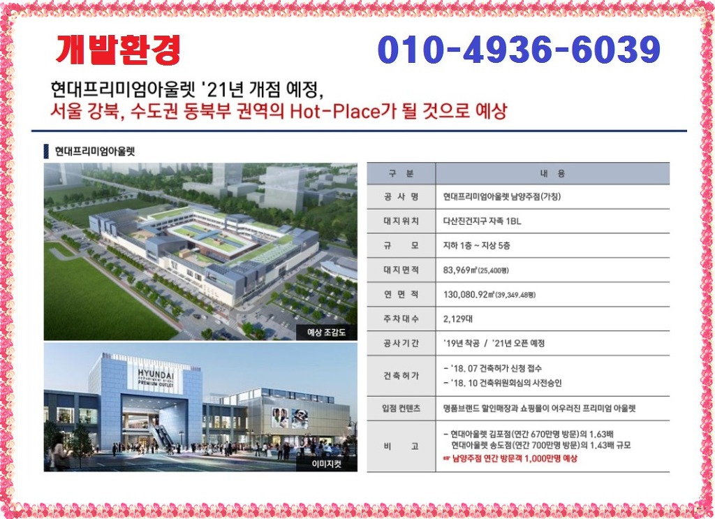 또한, 스트리트형 구성을 갖춘다는 점 역시 유동인구 유입에 유리하며 지식산업센터 바로 앞 입지에 현대프리미엄아울렛 들어설 예정인 만큼 다산신도시를 대표하는 중심상업지구로 시너지 효과를 낼 수 있습니다.