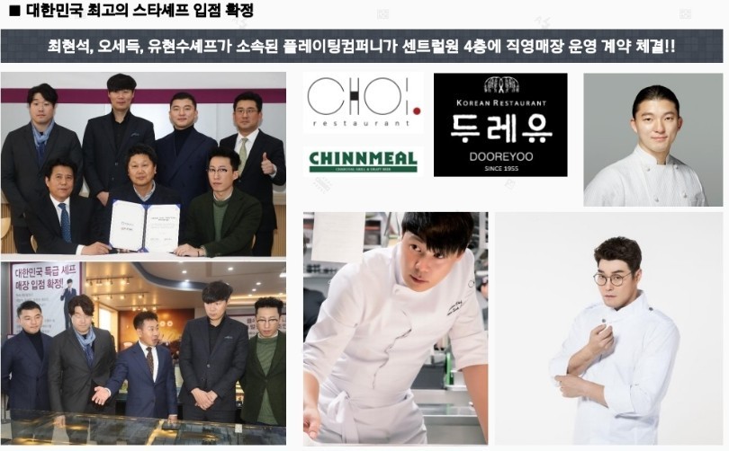 6. KBS와 콘텐츠 협약체결 및 냉장고를 부탁해 최현석셰프 사단 (주)플레이팅컴퍼니 4층에 입점 계약되었습니다. 4층에 한류드라마 및 방송체험센터가 함께 설치됩니다