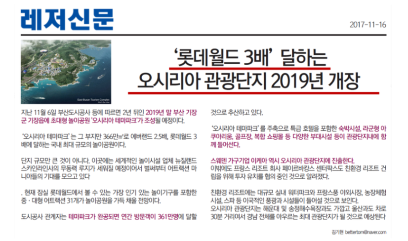 1. 사계절 체류형 오시리아관광단지(4조원관광단지조성사업)