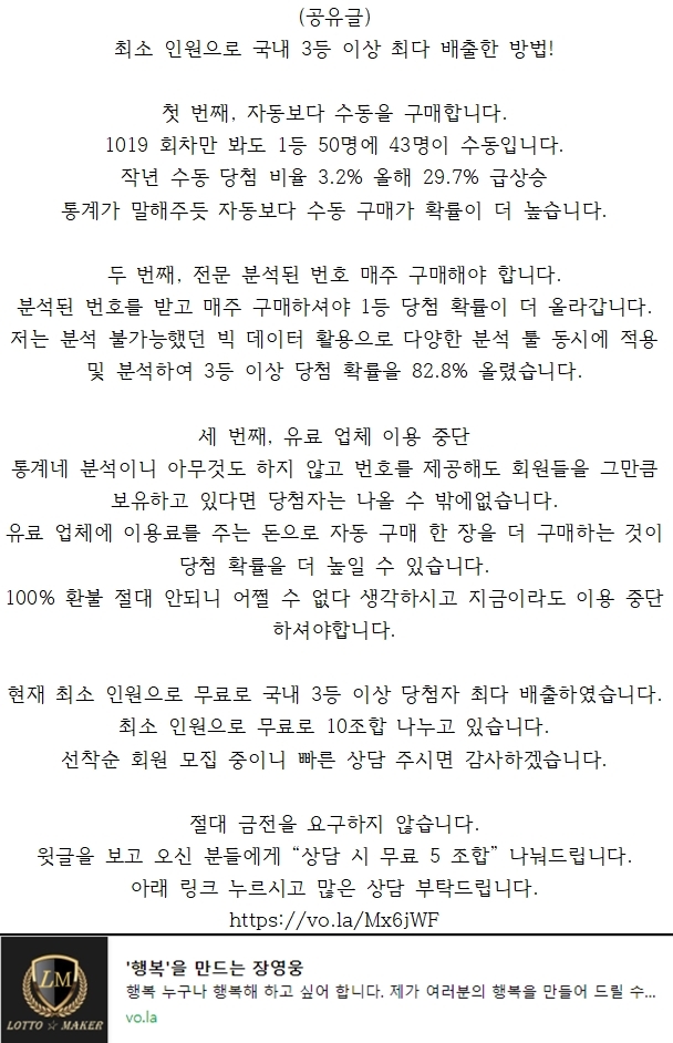 실제 당첨자가 말해주는 확실한 1등 당첨 방법 작성시간22.08.24|조회수13 목록 댓글 0 글자크기 작게가 글자크기 크게가 다음검색 현재 게시글 추가 기능 열기 북마크 신고 센터로 신고 댓글 댓글 0 댓글쓰기 답글쓰기 댓글 리스트