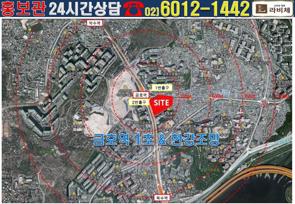 아파트는 초역세권 입지다. 금호역 2번 출구(도보1초)와 지하로 이어지는 도심지 직주근접단지로 지하철 이용시 광화문역 17분, 강남역까지 23분이 소요된다. 강변북로와 동부간선도로 등도 이용 가능하다.