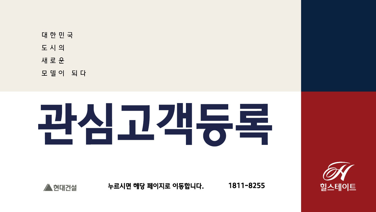 방역수칙을 준수하기 위해 비대면으로 관심고객등록을 받고 있습니다. 모델하우스는 사전예약으로 운영되어, 관심고객등록을 접수하여 담당자의 안내를 받으시기 바랍니다. [담당 팀장 1811-8255]