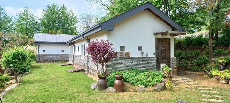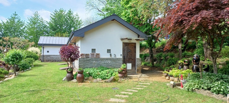 한옥의 멋과 현대 건축이 어우러진 숲속 카페 감성 프리미엄급 정원을 자랑하는 전원주택