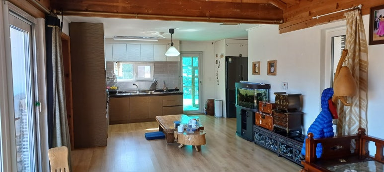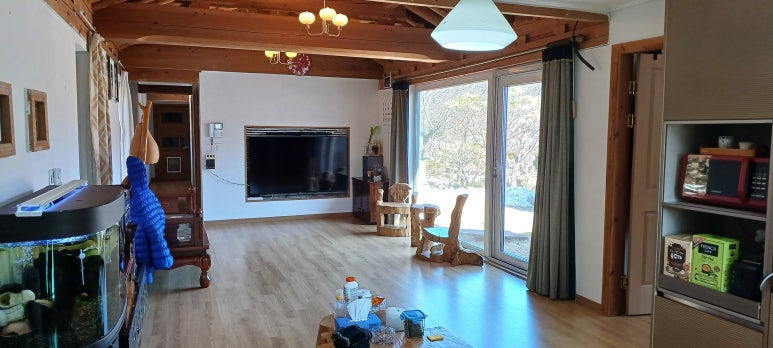-- 거실(대들보,서까래,툇보)및 외벽,담장은 한옥 스타일
