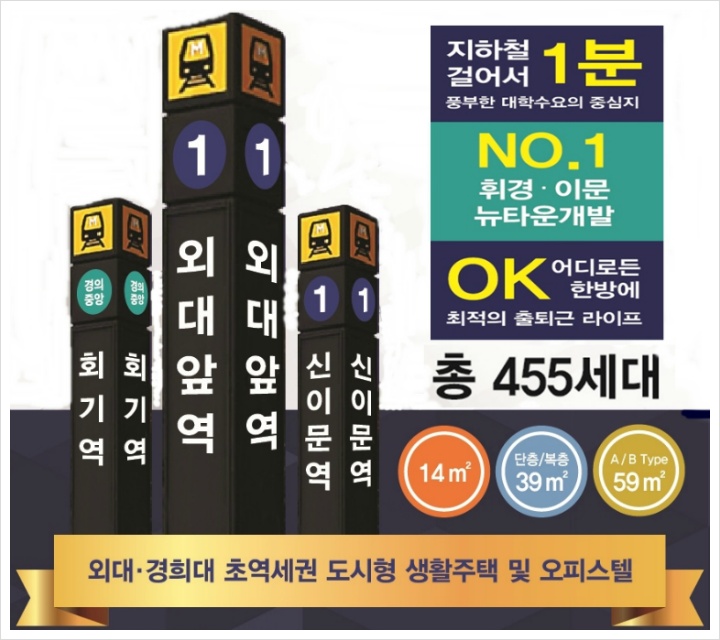 "지웰 에스테이트" 지하철1호선 외대앞역 4번출구 1분 초역세권으로 프리미엄 기대 가능합니다