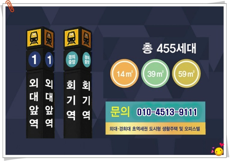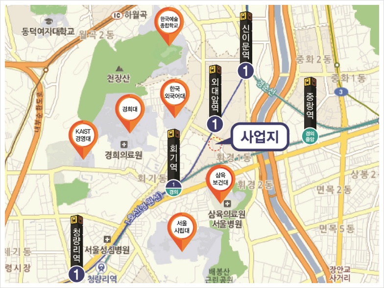 주변 외국어대. 경희대. 시립대. 등 5개대학의 6만명의 확실한 임대수요로 공실걱정은 없습니다.