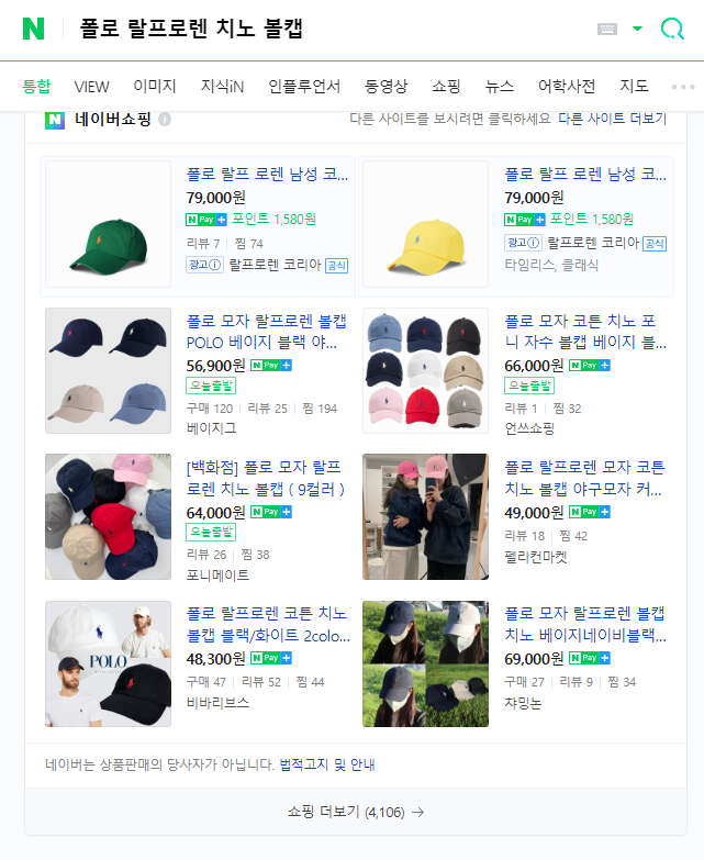 - 폴로랄프로렌 볼캡 - 치노베이스