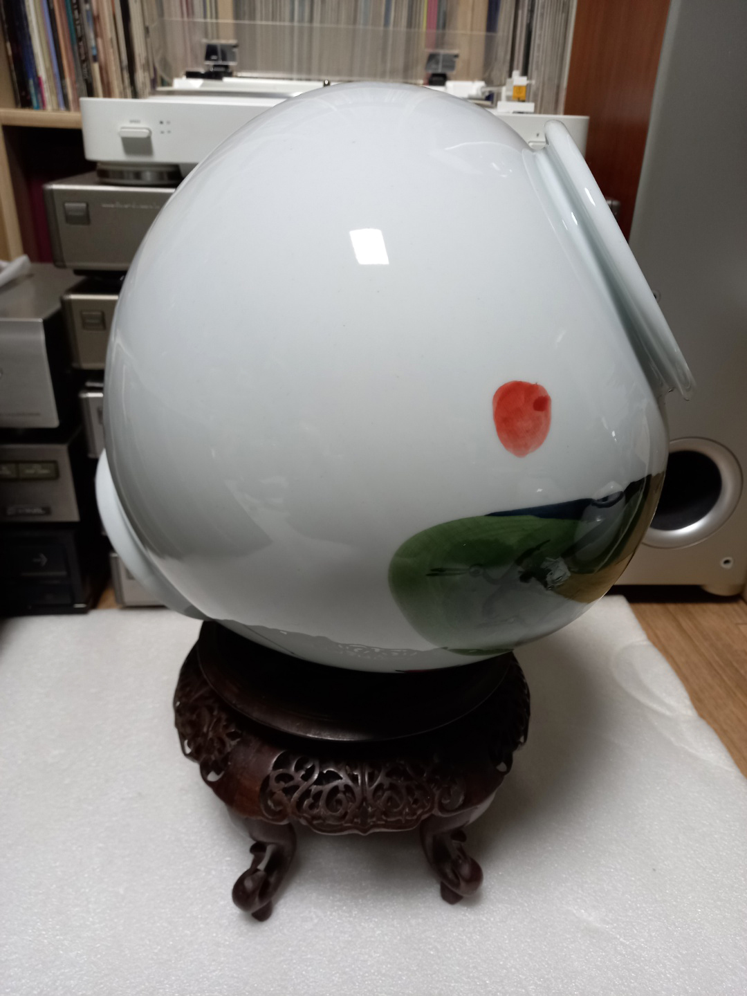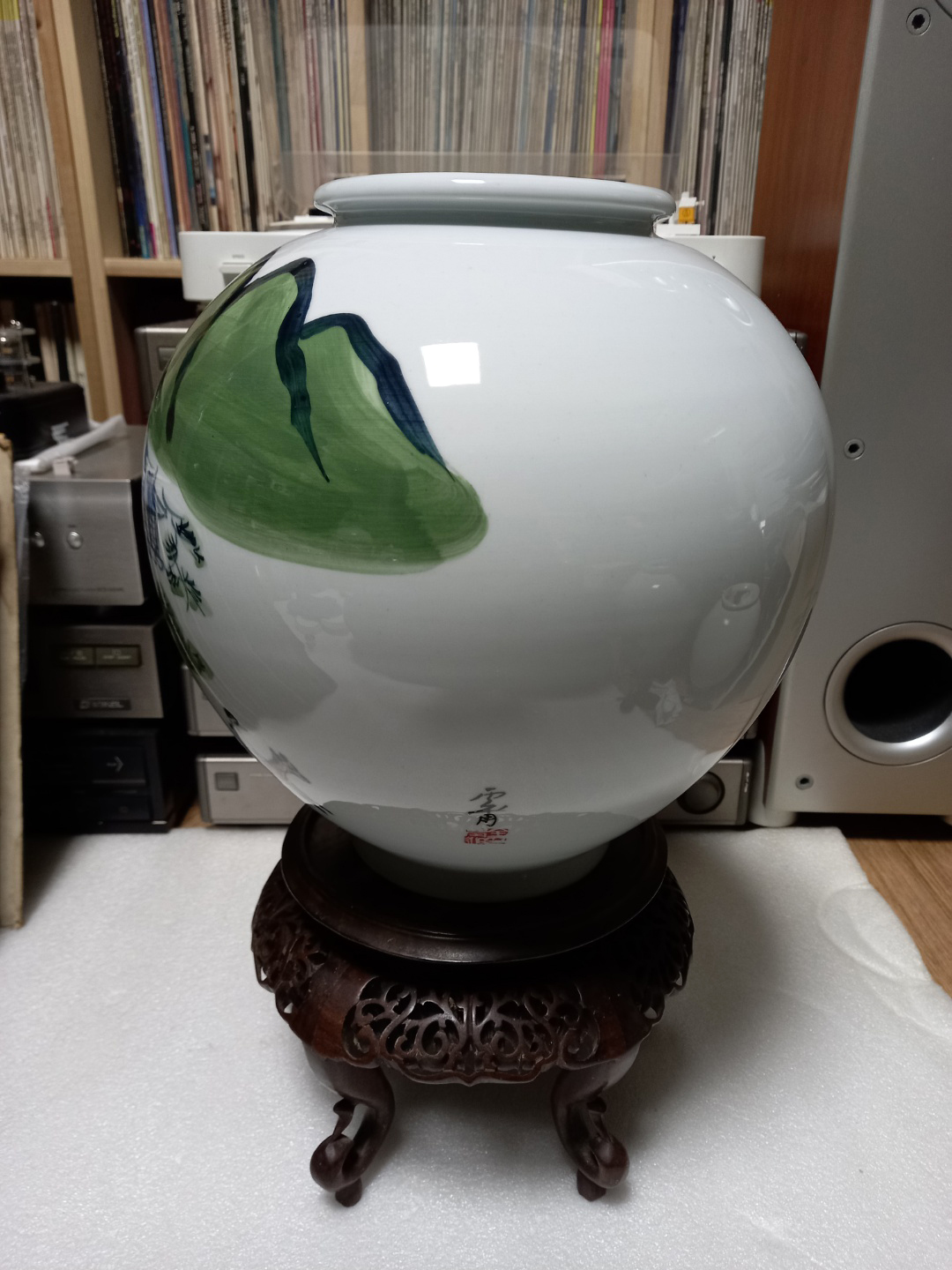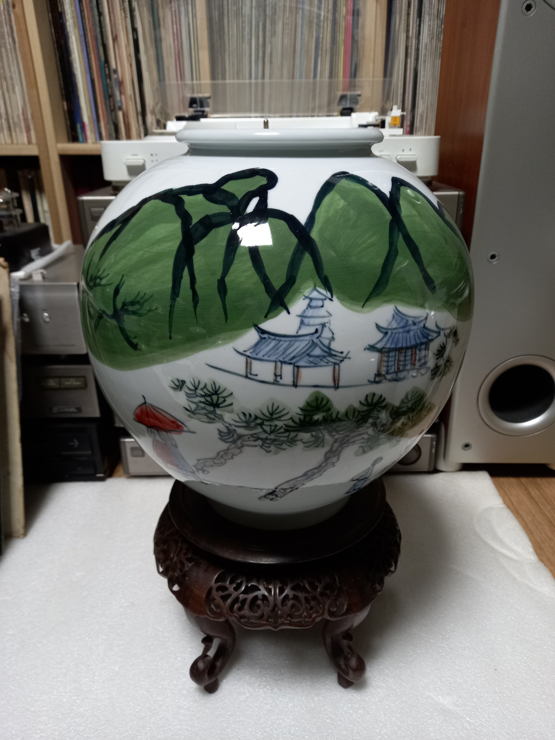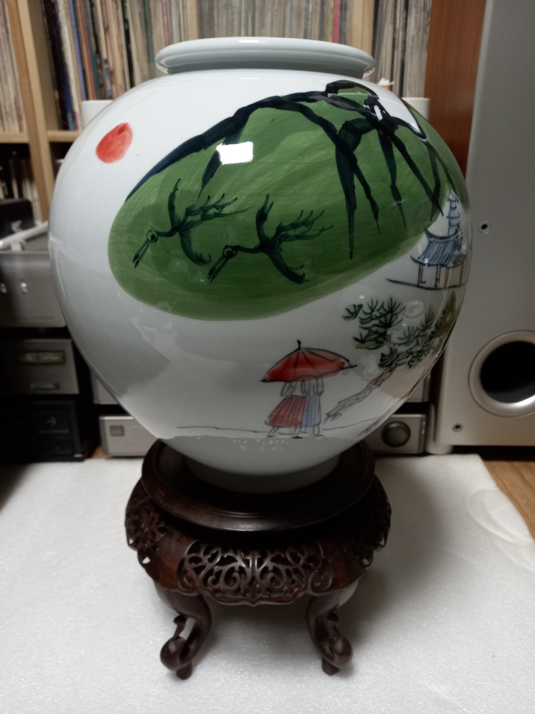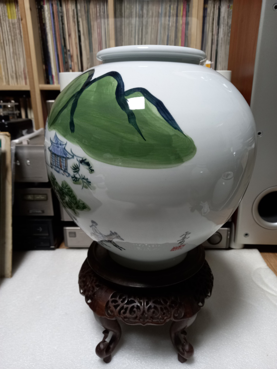 운보 김기창 화백의 걸작 '바보산수' 그림이 있는 백자 대호 달항아리입니다.