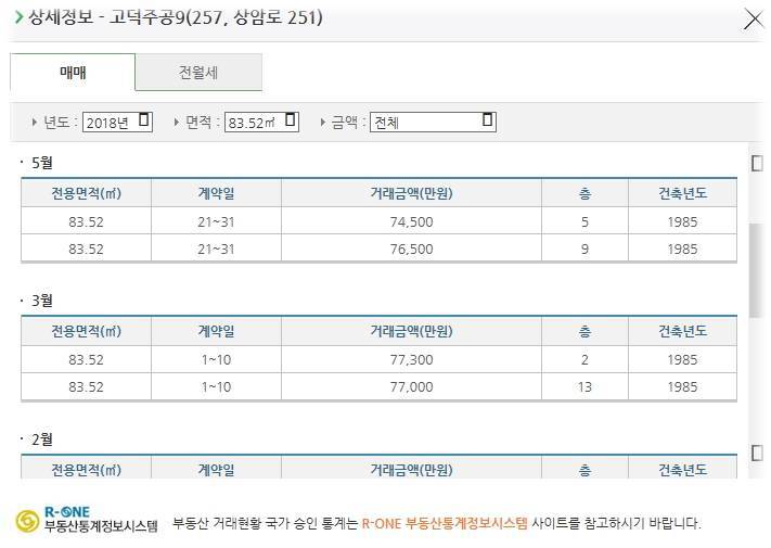 부동산 실거래가 5월기준 7억4500만원 5층 거래 / 7억6500만원 해당6층 실거래