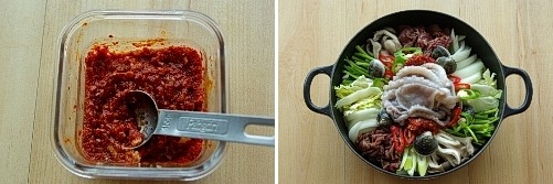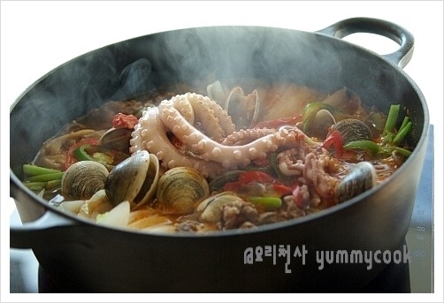 끓는 육수를 준비한 재료 위에 붓고 상위에서 끓이면서 드시면 됩니다 ^^*