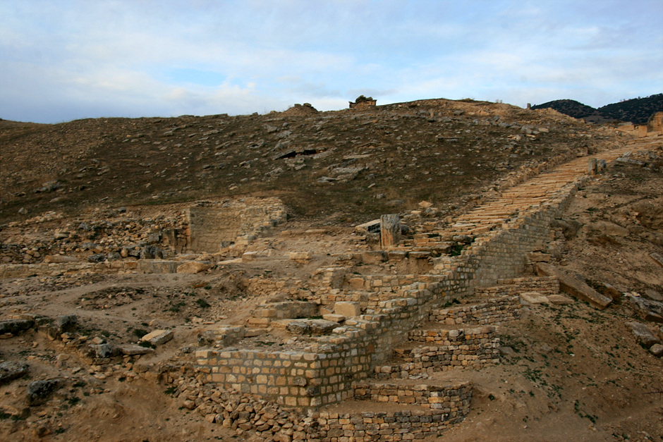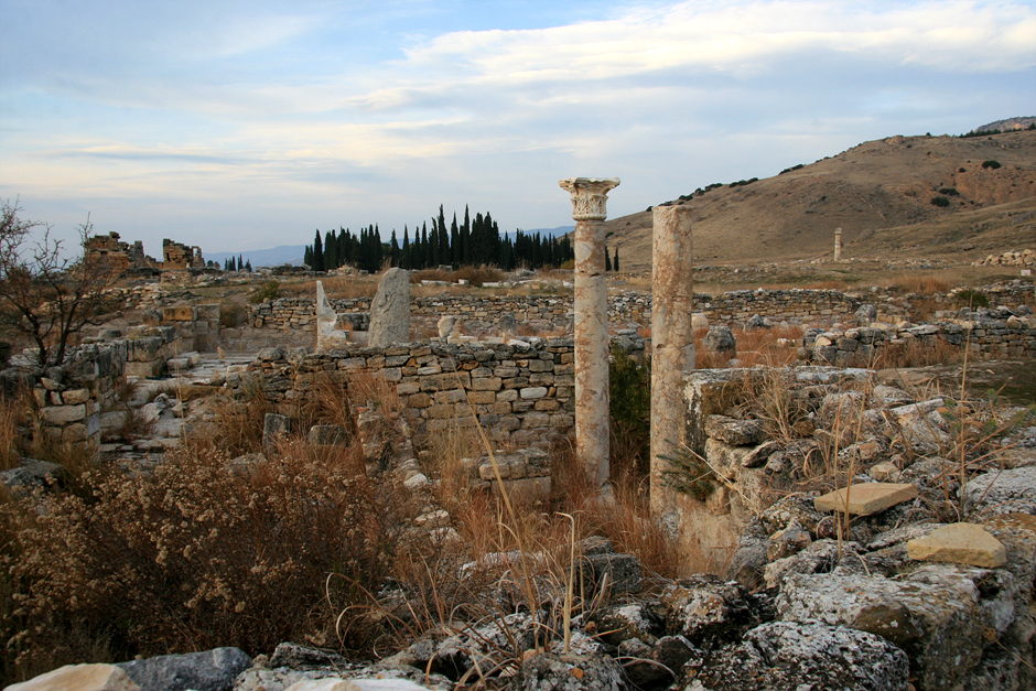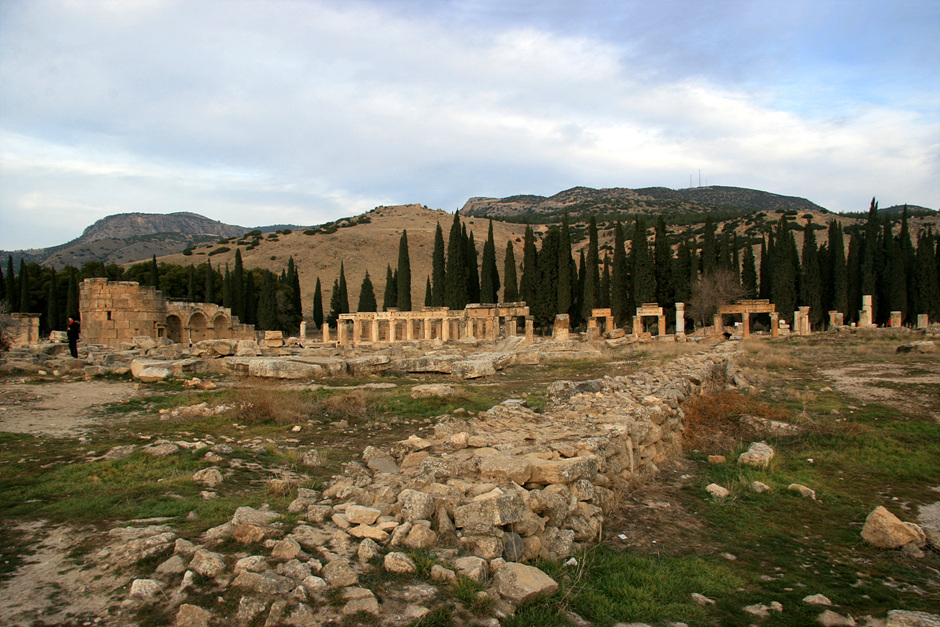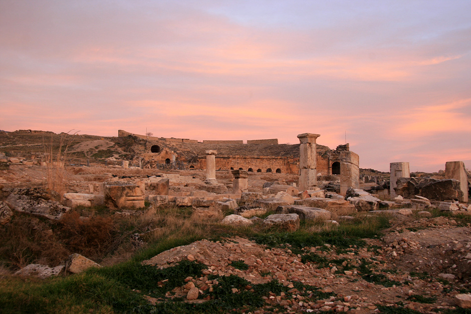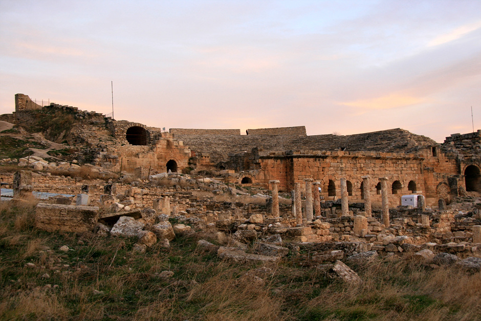 | 히에라폴리스는 B.C. 2세기경 버가모의 왕 엔메네스(Enmenes Ⅱ)에 의해서 도시로 세워졌다. 그러나 도시가 세워지기 전부터 이곳은 온천이 있었기 때문에 온천물이 솟는 동굴은 제의적인 장소로 여겨졌고 따라서 일찍부터 이곳에는 성소(Sanctury)가 있었다. 히에라폴리스(Hierapolis)라는 이름도 그 뜻은 본래 "성소가 있는 도시(City of the hieron)"였으며 후에는 거룩한 도시(Holy City)라는 뜻으로 변하였다. 로마 시대의 공중목욕탕(Rome baths)의 유적이 남아있고 로마식 야외 극장터도 남아있다. 히에라폴리스 유적 중 가장 유명한 것은 큰 공동묘지(necropolis)이다. 이곳에는 약 1,200개 이상의 석관이 발견되었으며 소아시아에서 가장 큰 규모의 네크로폴리스 중의 하나이다. '목화의 성'이라는 뜻의 "파묵칼레"라고 불리우는 이곳은 신약성서의 골로새서에서 언급되는 히에라폴리스(성서상의 히에라볼리)이다. 히에라폴리스는 석회를 함유한 온천지역에 세워진 도시였다. 1840m 높이의 리코스 산 중턱 단애 위에 위치해 있는데 단애의 높이가 무려 376m에 이르러 산 아래쪽 멀리서 보면 석회가 굳은 모습이 마치 하얀 목화성처럼 보인다고 해서 영어의 코튼 캐슬(Cotton Castle)로 번역되는 터키어 파묵칼레(PAMUKKALE)라는 지명을 얻었다고 한다. |