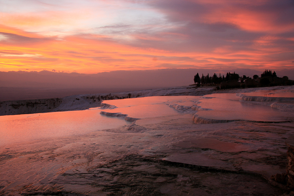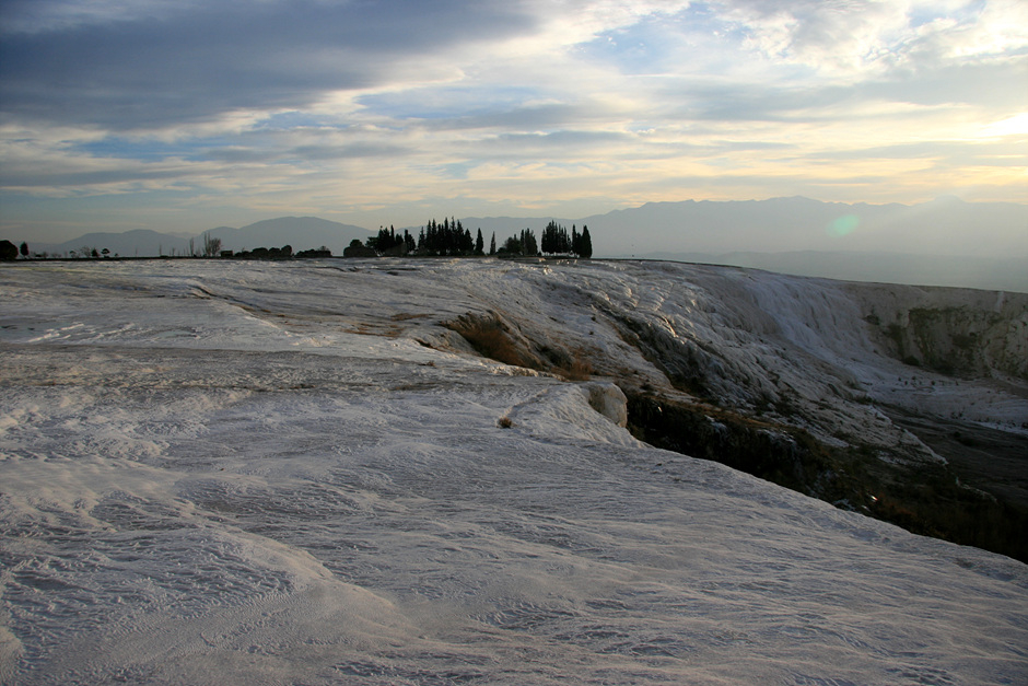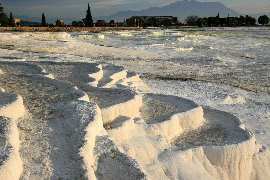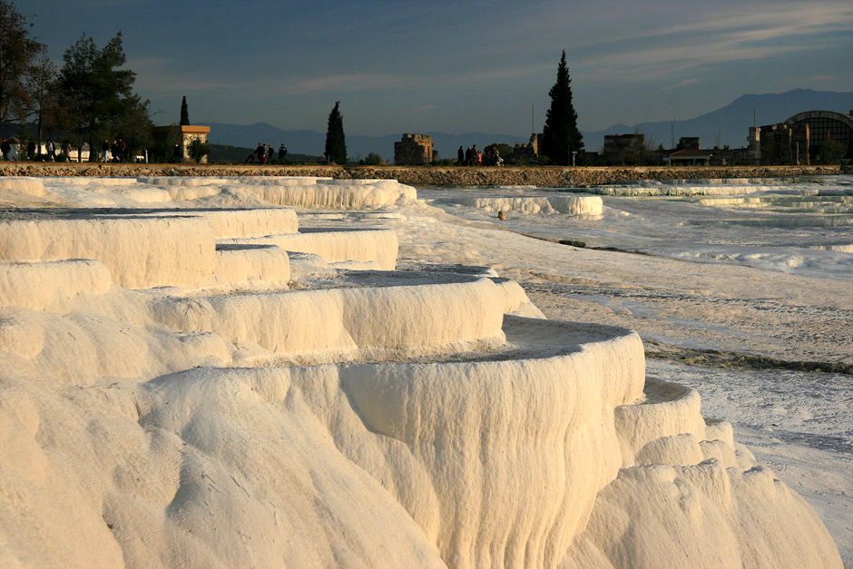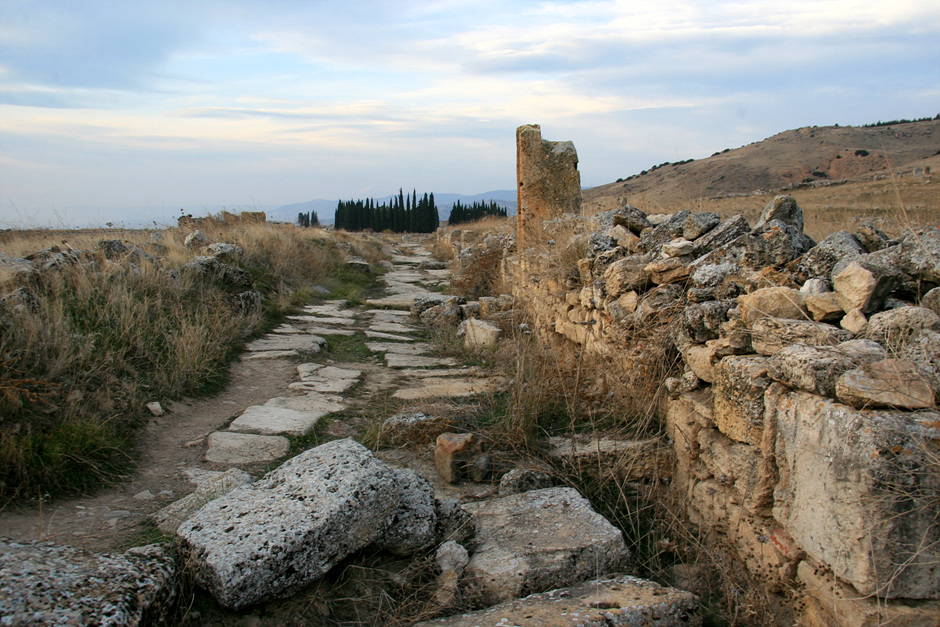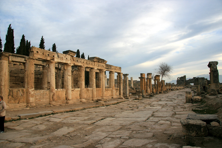 | 히에라폴리스는 B.C. 2세기경 버가모의 왕 엔메네스(Enmenes Ⅱ)에 의해서 도시로 세워졌다. 그러나 도시가 세워지기 전부터 이곳은 온천이 있었기 때문에 온천물이 솟는 동굴은 제의적인 장소로 여겨졌고 따라서 일찍부터 이곳에는 성소(Sanctury)가 있었다. 히에라폴리스(Hierapolis)라는 이름도 그 뜻은 본래 "성소가 있는 도시(City of the hieron)"였으며 후에는 거룩한 도시(Holy City)라는 뜻으로 변하였다. 로마 시대의 공중목욕탕(Rome baths)의 유적이 남아있고 로마식 야외 극장터도 남아있다. 히에라폴리스 유적 중 가장 유명한 것은 큰 공동묘지(necropolis)이다. 이곳에는 약 1,200개 이상의 석관이 발견되었으며 소아시아에서 가장 큰 규모의 네크로폴리스 중의 하나이다. '목화의 성'이라는 뜻의 "파묵칼레"라고 불리우는 이곳은 신약성서의 골로새서에서 언급되는 히에라폴리스(성서상의 히에라볼리)이다. 히에라폴리스는 석회를 함유한 온천지역에 세워진 도시였다. 1840m 높이의 리코스 산 중턱 단애 위에 위치해 있는데 단애의 높이가 무려 376m에 이르러 산 아래쪽 멀리서 보면 석회가 굳은 모습이 마치 하얀 목화성처럼 보인다고 해서 영어의 코튼 캐슬(Cotton Castle)로 번역되는 터키어 파묵칼레(PAMUKKALE)라는 지명을 얻었다고 한다. |