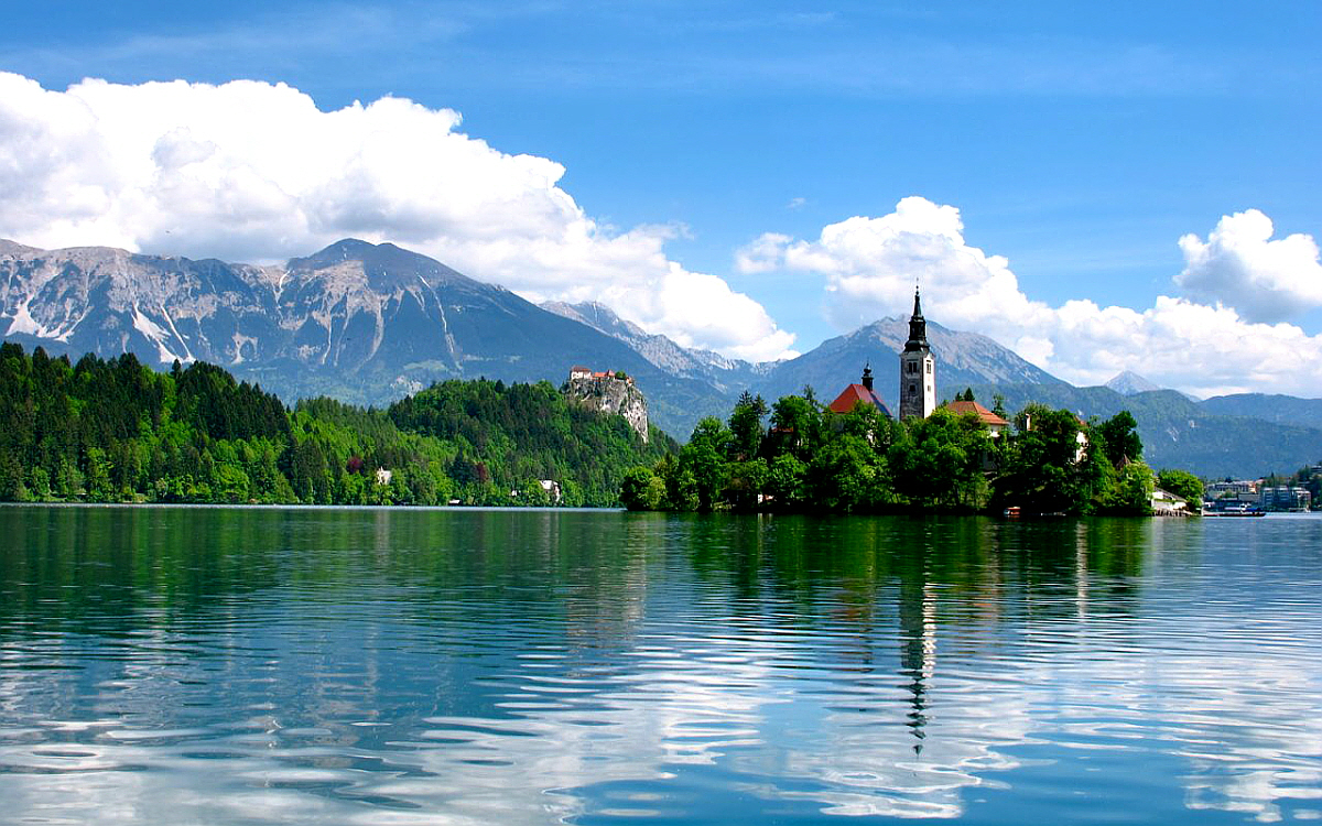 "거울 호수"라는 애칭이 붙은 뉴질랜드 남섬이 있는 호수는 마운트 쿡과 마운트 태즈만을 거울처럼 그대로 비추고 있다. 주변의 산림과 빙하, 국립공원 다리도 정말 아름답다. 블레드 호수 Lake Bled, 슬로베니아 Slovenia