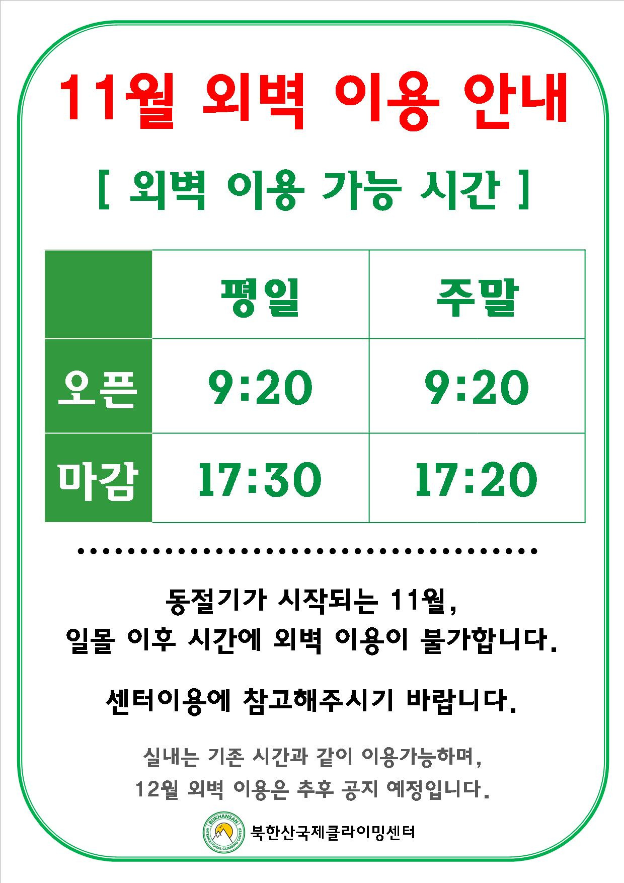 [공지] 11월 외벽 이용 안내 작성자하지윤|작성시간25.10.29|조회수414 목록 댓글 1 글자크기 작게가 글자크기 크게가 다음검색 현재 게시글 추가 기능 열기 북마크 공유하기 신고 센터로 신고 댓글 댓글 1 댓글쓰기 답글쓰기 댓글 리스트 작성자바램 | 작성시간 25.10.29 감사합니다 댓글 전체보기