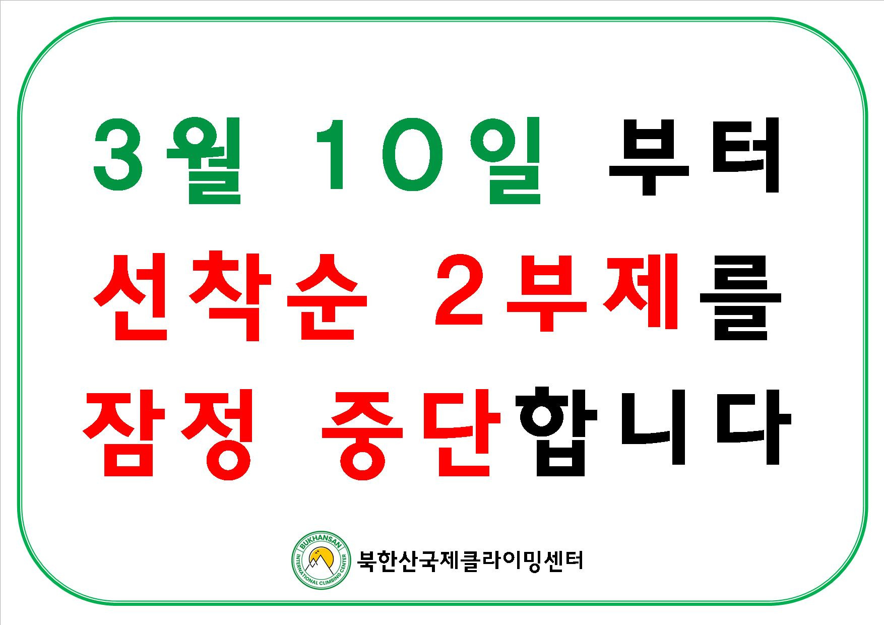 3월 10일 다음주 화요일부터 선착순 2부제를 잠정 중단하도록 하겠습니다!