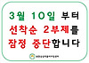 3월 10일 화요일부터 선착순 2부제를 잠정 중단 합니다! 작성자 김자비 작성시간 26.03.05 조회수 177