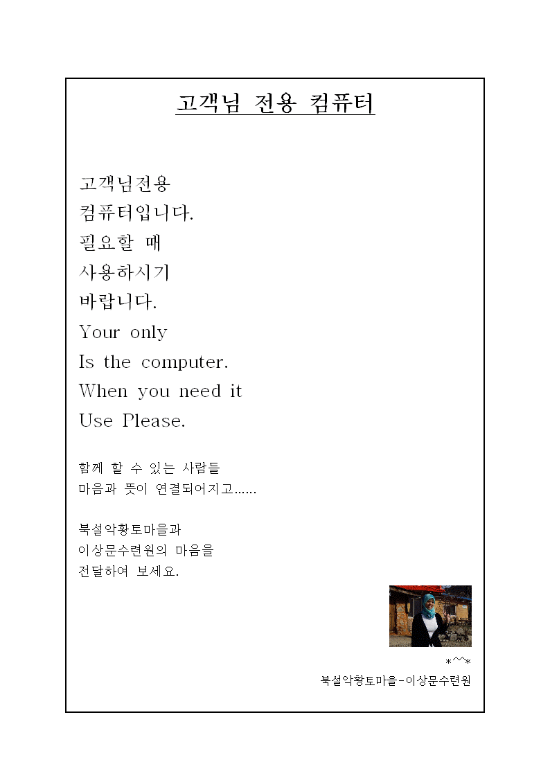 고객님전용컴퓨터가 소풍의 입구에 마련되어 있습니다. 작성자북황마|작성시간09.04.24|조회수7 목록 댓글 0 글자크기 작게가 글자크기 크게가 고객님의 인터넷서핑과 소통을 위하여 소풍의 입구에 고객님 전용컴퓨터가 설치되었습니다. 많은 분들이 좋은 소통을 함으로써.... 좀 더 행복하시기를 기원합니다. gva00000dd40001.gif 고객님 전용 컴퓨터.hwp 첨부파일첨부된 파일이 6개 있습니다. jpg 파일 IMGP3121.jpg 다운로드 jpg 파일 IMGP3122.jpg 다운로드 jpg 파일 IMGP3123.jpg 다운로드 gif 파일 gva00000dd40001.gif 다운로드 hwp 파일 고객님 전용 컴퓨터.hwp 다운로드 gif 파일 gva00000dd40001.gif 다운로드 다음검색 현재 게시글 추가 기능 열기 북마크 공유하기 신고 센터로 신고 댓글 댓글 0 댓글쓰기 답글쓰기 댓글 리스트
