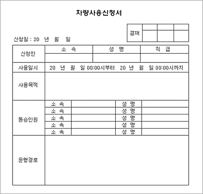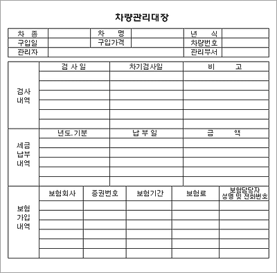 회사소유차량은 다른 집기비품과 같이 회사의 자산이므로 관리를 잘해야 한다. 대부분의 차량이 영업용이나 여러직원들이 업무용으로 사용하기때문에 그 만큼 내부 관리를 잘해야 한다. 회사소유차량의 검사기간,세금납부내역,보험가입내역등을 기재한 차량관리대장을 작성,비치해야한다. 또한 여러 사람이 사용하는경우 차량 사용 신청서를 해당 직원에게 받아 차량사용통제를 해야 불필요하게 회사차량을 사용하는 것을 방지할 수 있다. 특히 여러대의 차량이 있는 경우 차량 별로 차량관리대장을 작성해야하며 차량관리대장 이면에는 자동차등록증사본,보험가입영수증,세금납부영수증사본등을 같이 첨부해 비치하는 것이 무난할 것이다. 차량관리 대장과 차량사용 신청서 실례는 다음과 같다.