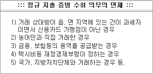 ▶ 건당 10만원 이상을 지출하고도 세금계산서등을 받지 않아도 되는 경우는 다음과 같다.
