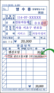 영업부 한대리가 지방 출장시 차량 엔진오일을 교체하면서 20,000원을 현금으로 지급하다. |