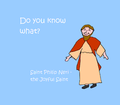 축일:5월26일 성 필립보 네리 사제 Saint Philip Neri San Filippo Neri Sacerdote St. Philippus Neri, C Also known as Philip Romolo Neri; Apostle of Rome; Amabile Santo Born:22 July 1515 at Florence, Italy Died:27 May 1595 Beatified:11 May 1615 by Pope Paul V Canonized:12 March 1622 by Pope Gregory XV Congregation of Priests of the Oratory Filippo = che ama i cavalli, dal greco = that it loves the horses, from the Greek