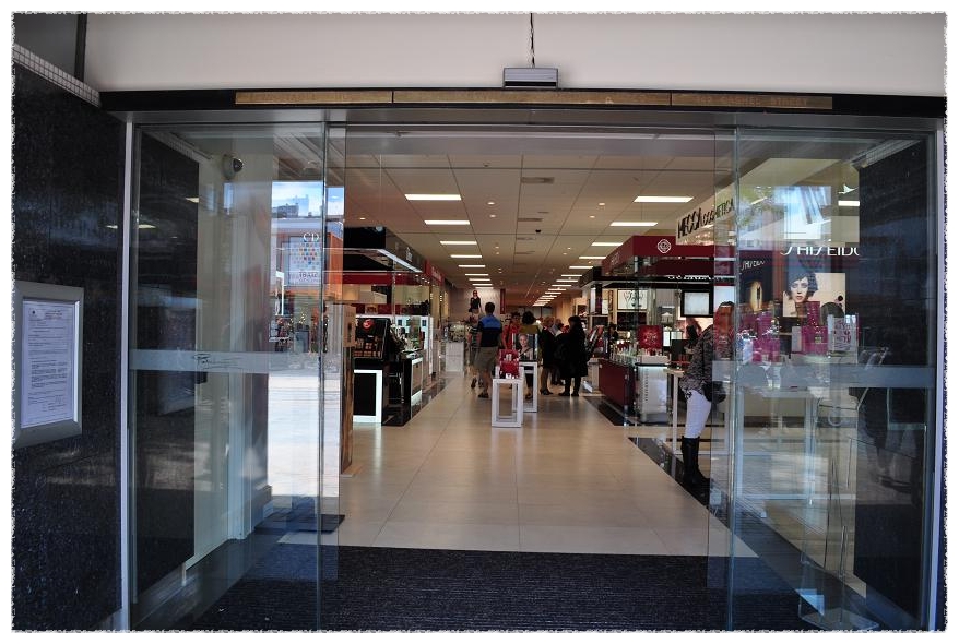활짝 열린 유리문 사이 보이는 백화점 안은 예전처럼 깔끔한 모습~