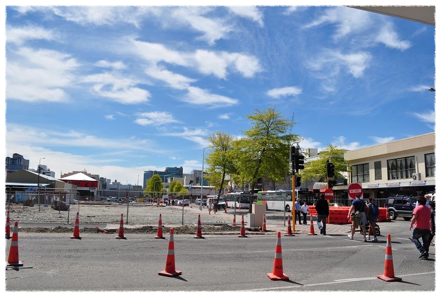 2월 여진의 가장 큰 피해지역이었던 시내 중심을 가르는 Colombo St 와