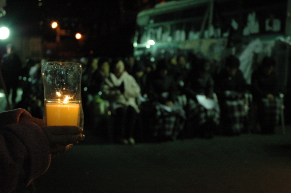 우리는 용산참사가 국가권력이 건설자본 편에 서서 서민의 생존권을 짓밟고 그 과정에서 무고한 인명이 살상된 사건임을 기억하기 위해 이 자리에 있습니다. 또한 자꾸만 거꾸로 돌아가는 세상을 바로 잡기 위해, 거짓으로 일관된 정부, 검찰, 법원, 헌재를 일깨우기 위해 이 자리를 지키고 있는 것입니다.