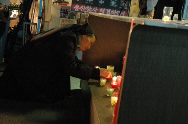 오늘로서 용산참사가 일어난 지 296일이 되었습니다. 엄동설한에 시작된 싸움은 봄을 지나 여름, 가을, 그리고 또 다시 겨울을 앞두고 있습니다. 계절이 3번 바뀌었지만 유족들에게는 늘 '차가운 겨울'이었습니다. 그리고 참사가 난 '1월 20일'에 시간은 멈추어져 있습니다. 죽은 열사들의 고통도, 유가족들의 슬픔도, 그리고 전철연 가족들의 투쟁도 '1월 20일'이라는 시간 속에 멈추어져 있습니다.