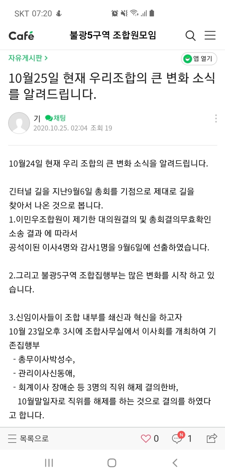 ◇10월25일 현재 우리조합의 큰 변화 소식를 알려드립니다.