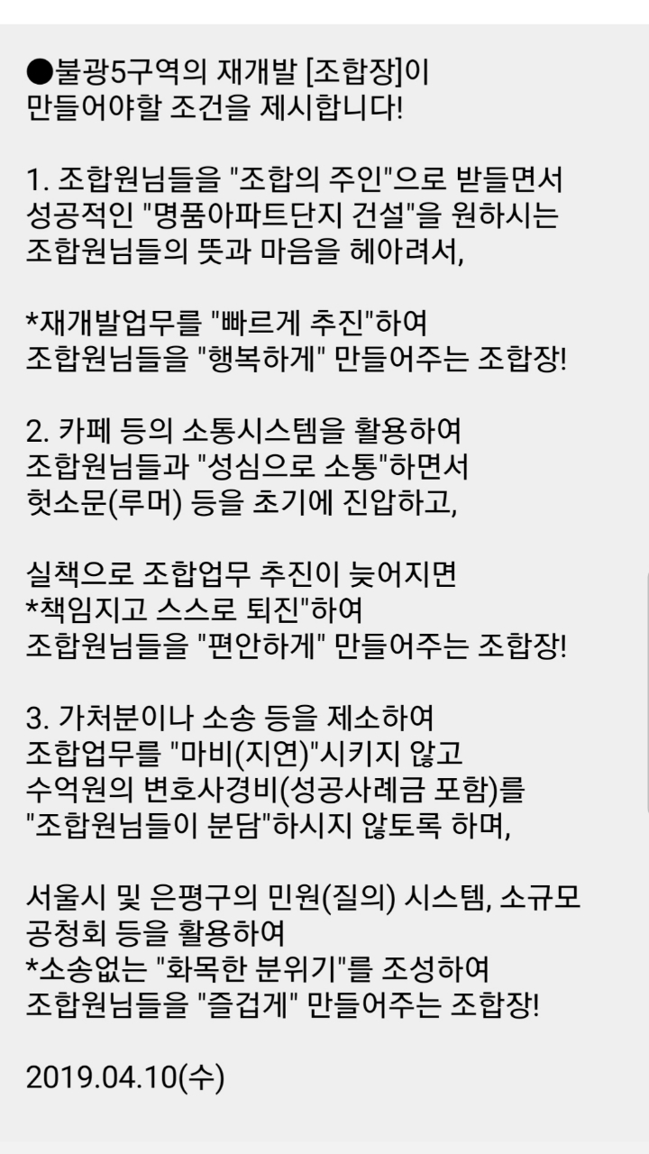 작성자불광제5재개발성공 작성자 본인 여부 작성자 작성시간 19.04.13 ●불광5구역의 재개발 [조합장]이 만들어야할 조건 제시!