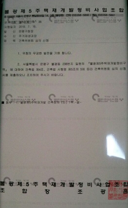 ◇불광제5주택재개발 정비사업조합 재개발 재건축 클린업시스템 (2019.08.10)