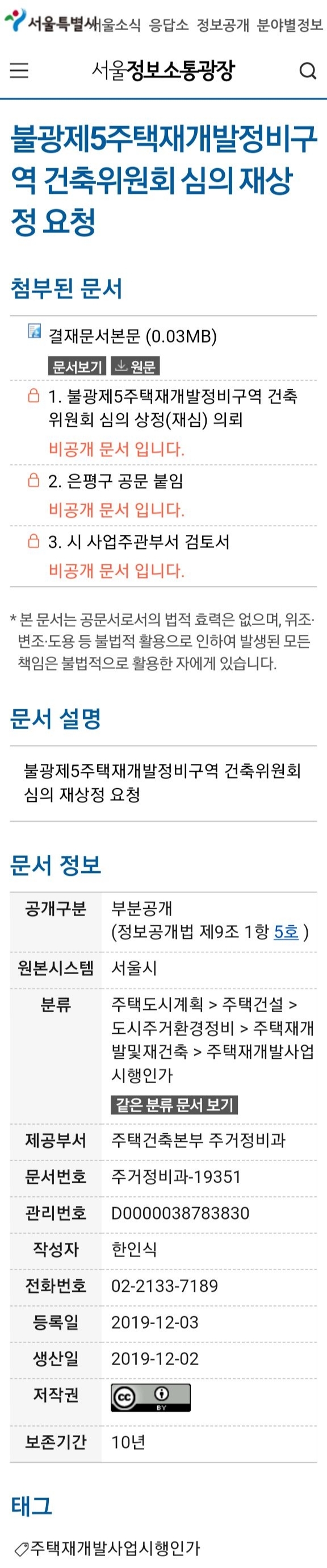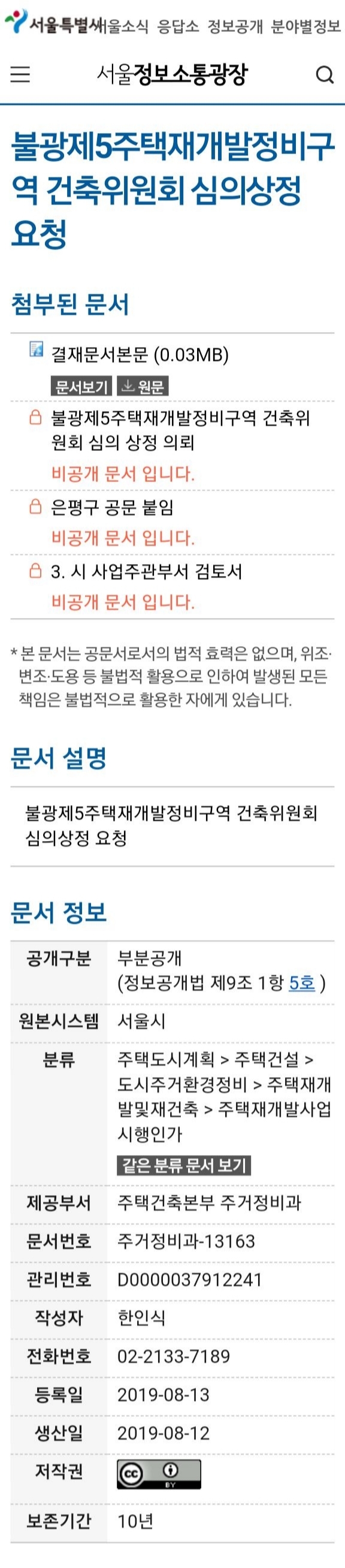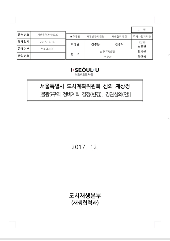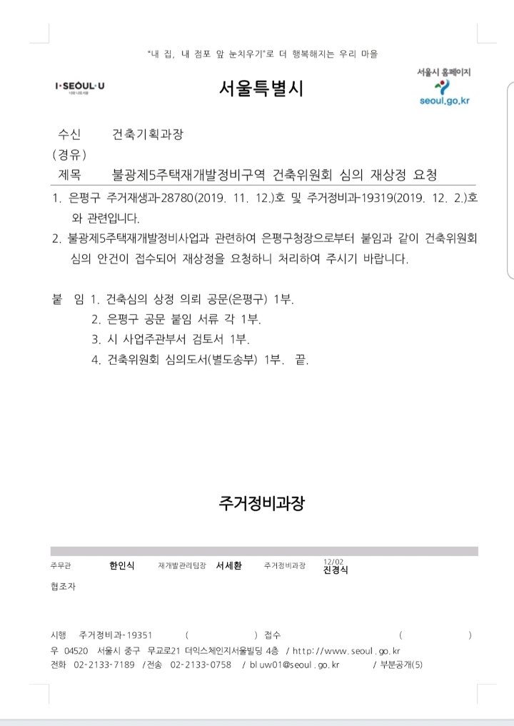 ◇불광제5주택재개발정비구역 건축위원회 심의 재상정 요청(2019년12월02일자)에 관련된 서울시 공문서의 사실 확인!