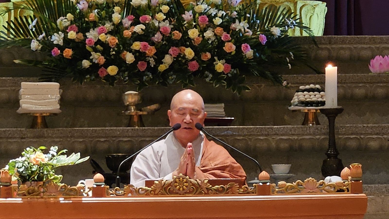 우리가 선망조상님이나 부모에게 효도할 수 있는 방법이 세 가지가 있는데 하나는 살아계실 때 부모님 말씀 잘 듣고 시키는 대로 공양하는 겁니다. 둘째는 부모님이 살아계실 때 불법을 만날 수 있게 전법을 하여 부처님 법을 믿고 계를 지킬 수 있게 도와드리는 겁니다. 1년에 한 번씩 하던 합동 수계식을 그 동안 못했는데 옛날 수계식에서는 항상 부모님을 모시고 와서 수계와 불명을 받도록 해서 불법의 인연을 심어주었고 이것이 살아있을 때 하는 효도입니다. 셋째는 다른 종교에는 없고 오직 불교에만 있는 것인데 돌아가신 부모님께서 악도에 떨어지지 않고 부디 좋은 세상 천상세계에 태어나서 세세생생 복락을 누리도록 도와드리는 겁니다. 이 정점을 이루는 것이 우란분절입니다. 살아계신 부모님은 건강하게 오래오래 사시도록 하는 것이고 돌아가신 부모님은 부디 악도에 떨어지지 말고 좋은 곳에 태어나서 세세생생 복락을 누리시길 발원하고 기도하는 겁니다. 형제 여러분의 정성으로 여러분의 선망부모님이 왕생극락하고 여러분의 현생 부모님은 수명이 다할 때까지 건강하게 복락을 누리는 계기가 되기를 바랍니다. 오늘은 여기에서 마치겠습니다. 형제 여러분 감사합니다.