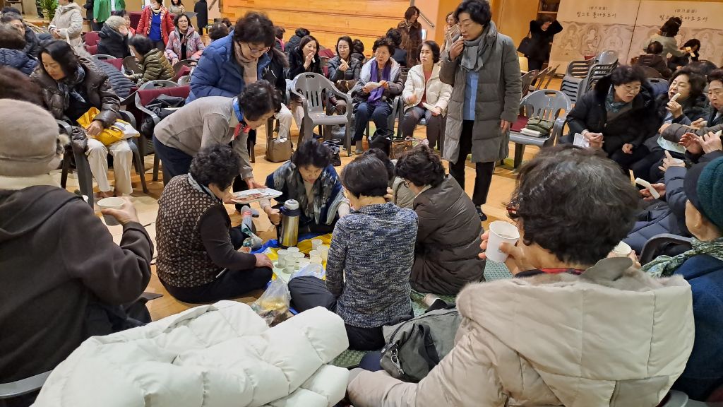 - 지난 일요일에는 12월 정기 명등회의를 개최하여 12월 및 내년 1월 행사일정 등을 결정하였습니다. 이날 찰밥 제공 횟수에 관해 논의하였는데 매월 2회 찰밥 제공을 희망하는 명등분들이 상당히 많아서 앞으로 매월 첫째 주와 셋째 주에 찰밥을 제공하도록 하였습니다.
