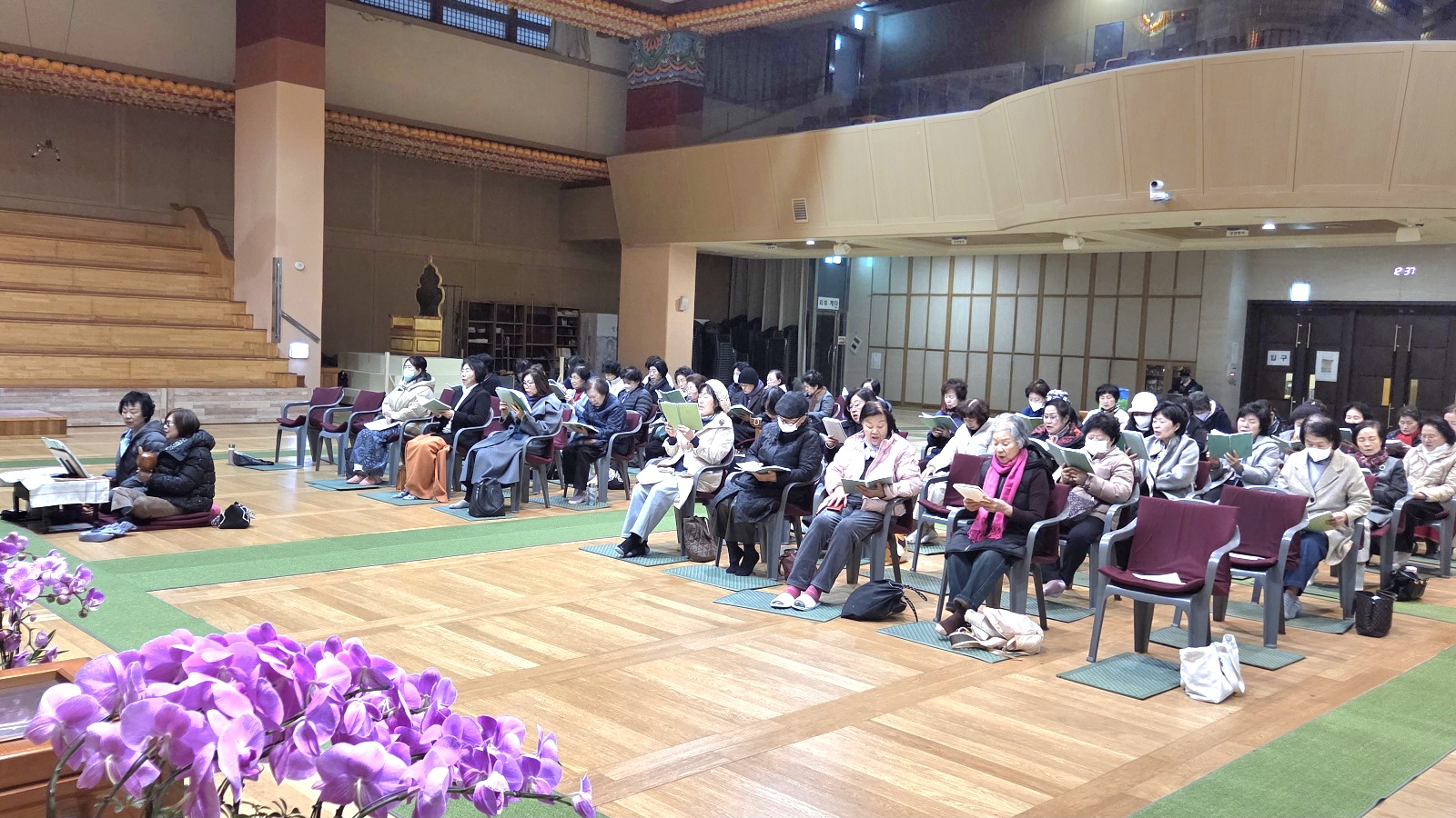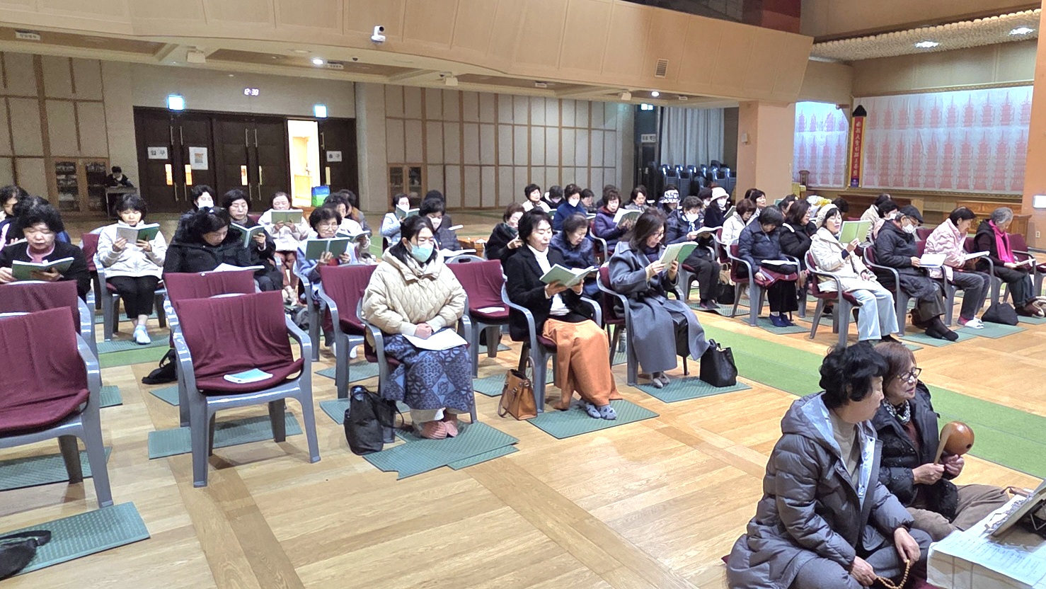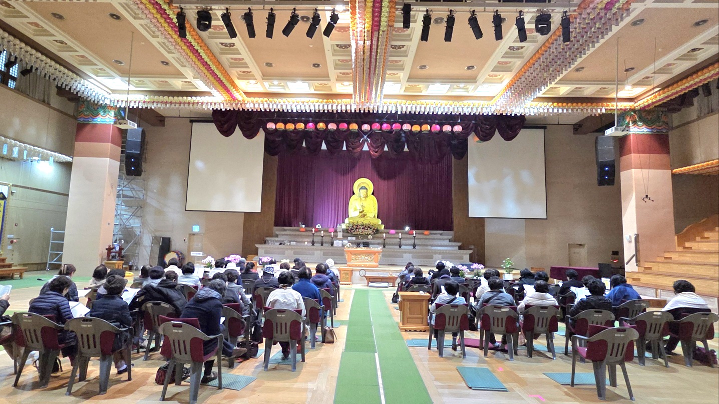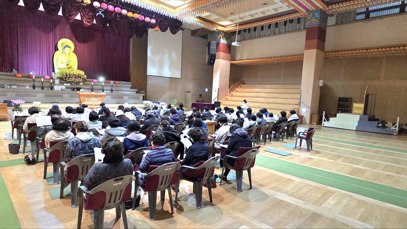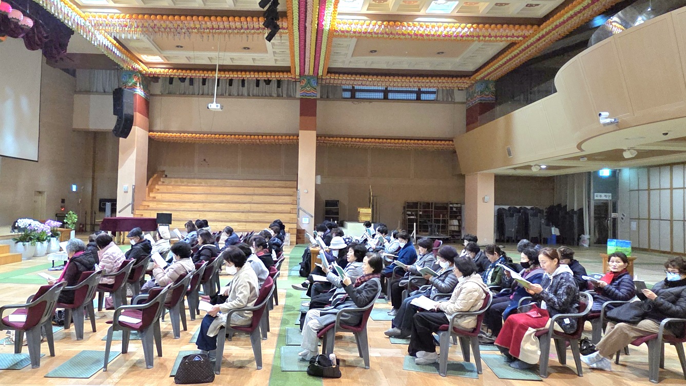 대웅전에 쉰다섯분의 불광형제들이 모여서 천수경과 보현행자의 서원, 불광법회 정상화 발원문과 금강경, 반야심경을