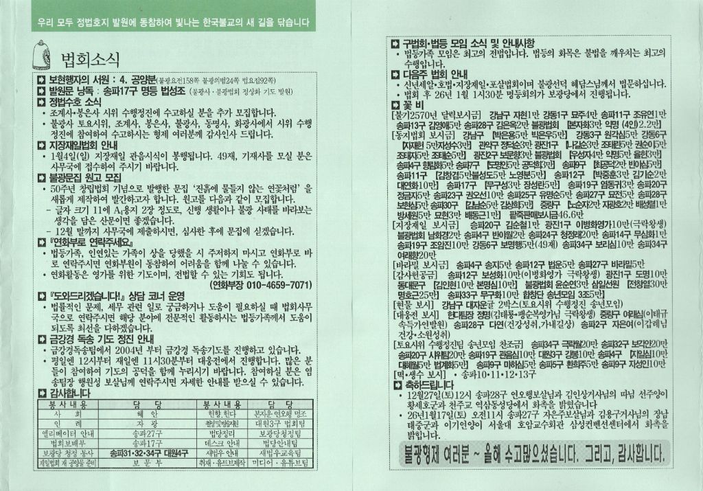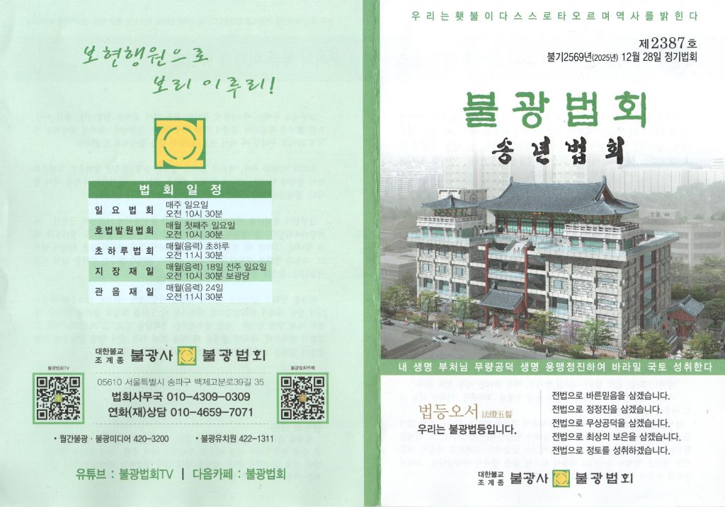 불기2569년(2025년도) 12월달 넷째주 일요일(12/28) 정기ㆍ송년 법회보 작성자종인(김성)|작성시간25.12.28|조회수30 목록 댓글 2 글자크기 작게가 글자크기 크게가 다음검색 현재 게시글 추가 기능 열기 북마크 공유하기 신고 센터로 신고 댓글 댓글 2 댓글쓰기 답글쓰기 댓글 리스트 작성자현진 | 작성시간 25.12.28 종인 거사님 을사년 한해함께하여서 보람되고 행복하였습니다.지난 1년 동안 수고 많이 하셨습니다.병오년 새해 더욱 건강하시고불광회상에서 언제나처럼동행해주시리라믿어의심치 않습니다감사드립니다 나무마하반야바라밀 답댓글 작성자종인(김성) 작성자 본인 여부 작성자 | 작성시간 25.12.28 현진거사님 감사합니다 저도 행복했습니다항상 감사드립니다 내년 병오년 새해 건강하시고 복많이 받으세요 종인합장 댓글 전체보기