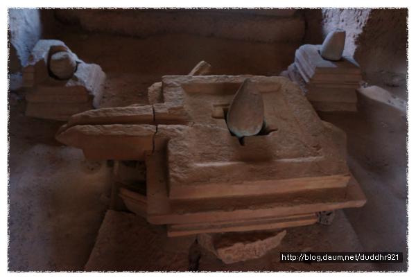 <링가가 있던 곳- 위로 솟은 것이 남성을 의미하고 아래에 파인 돌이 여성을 의미한다고