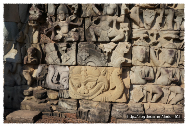 <앙코르톰 문둥이왕 테라스의 아랫 부분- 이렇게 퍼즐 맞추기를 해 놓았다>