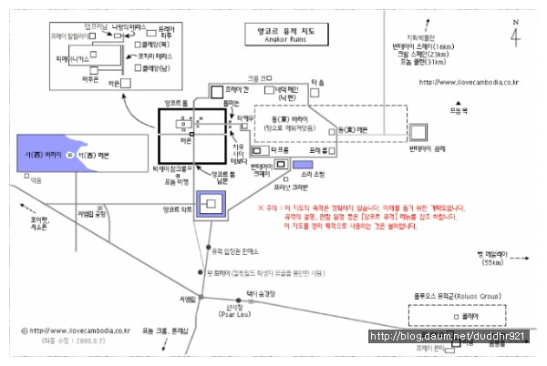 <앙코르 유적지 안내서- 아래 쪽에 룰루오스 유적지 그리고 씨엠립 시내에서 가장 가까운