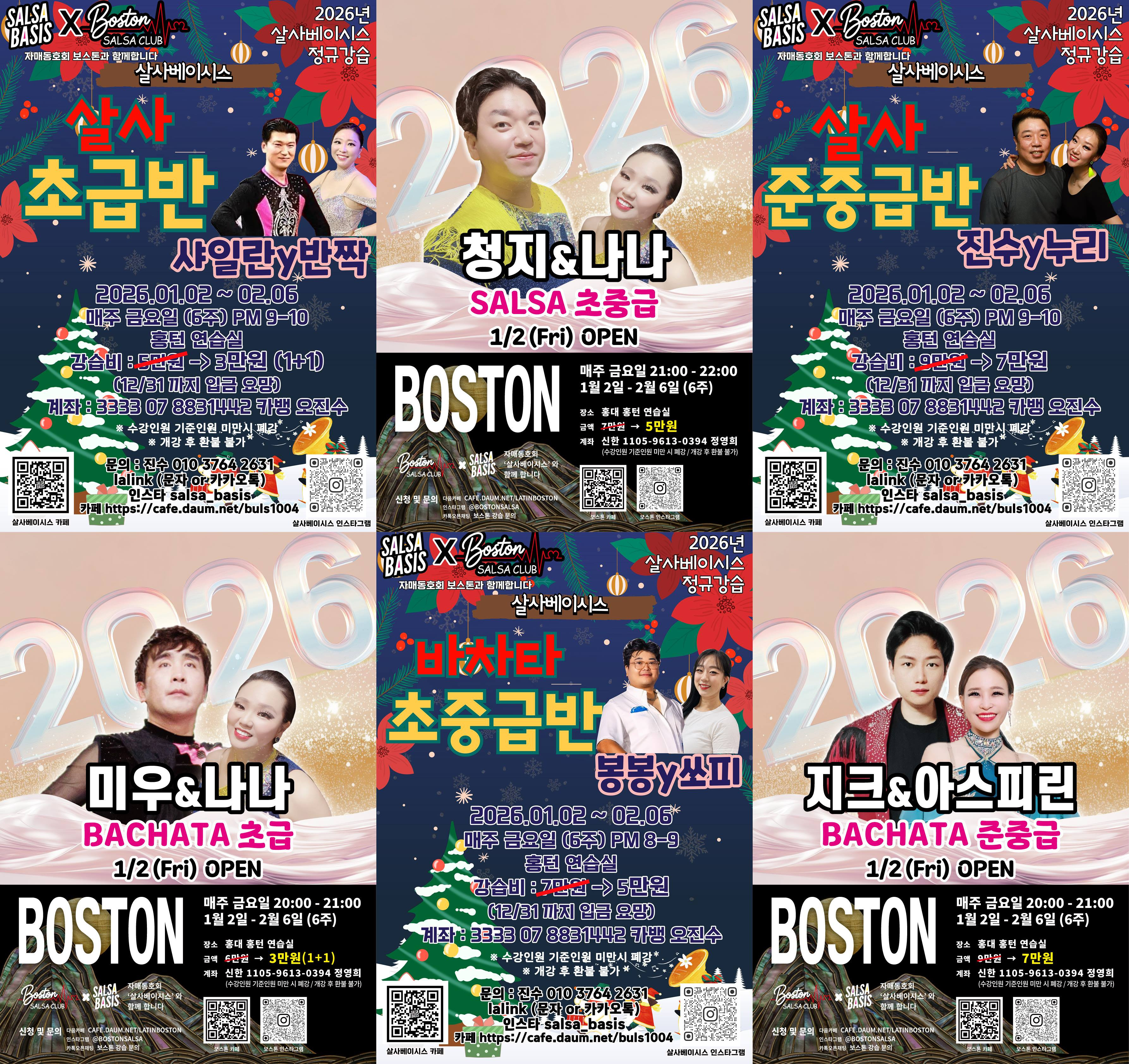 [살사베이시스 y 보스톤] 1-2월 강습안내 (살사 초급,초중급,준중급, 바차타 초급,초중급,준중급)바차타강습 시간변경(7시50분시작)