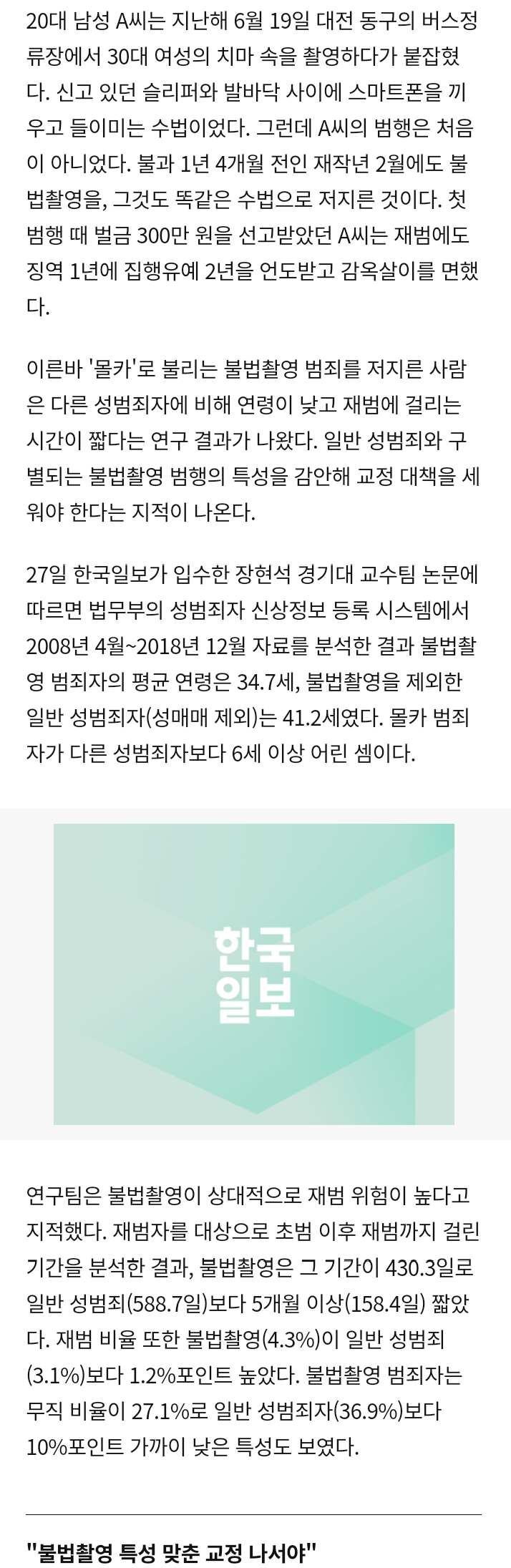 불법촬영 범죄자 평균연령 34세.