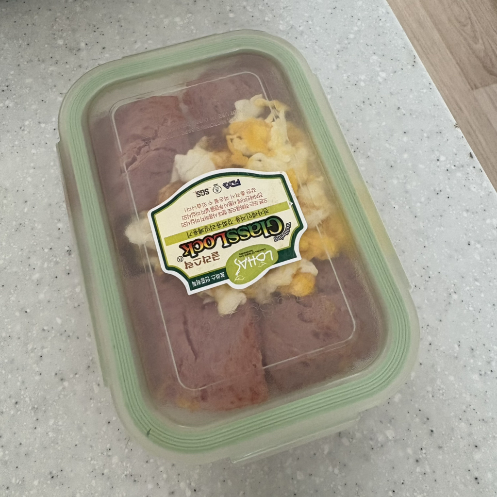 밥이랑 볶김 스팸 스크램블에그를 욱여넣엇어,,,
