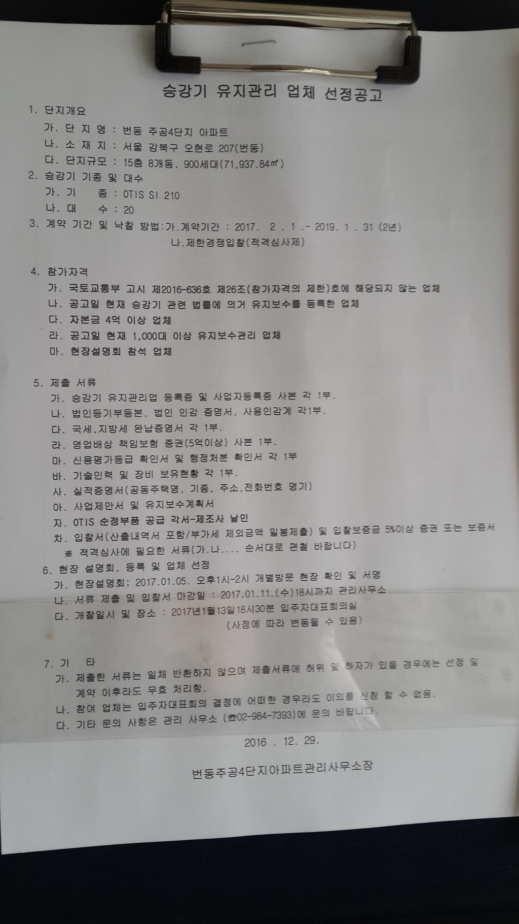 승강기유지업체 선정공고 작성자고 기주|작성시간17.01.05|조회수19 목록 댓글 0 글자크기 작게가 글자크기 크게가 공고 다음검색 현재 게시글 추가 기능 열기 북마크 공유하기 신고 센터로 신고 댓글 댓글 0 댓글쓰기 답글쓰기 댓글 리스트