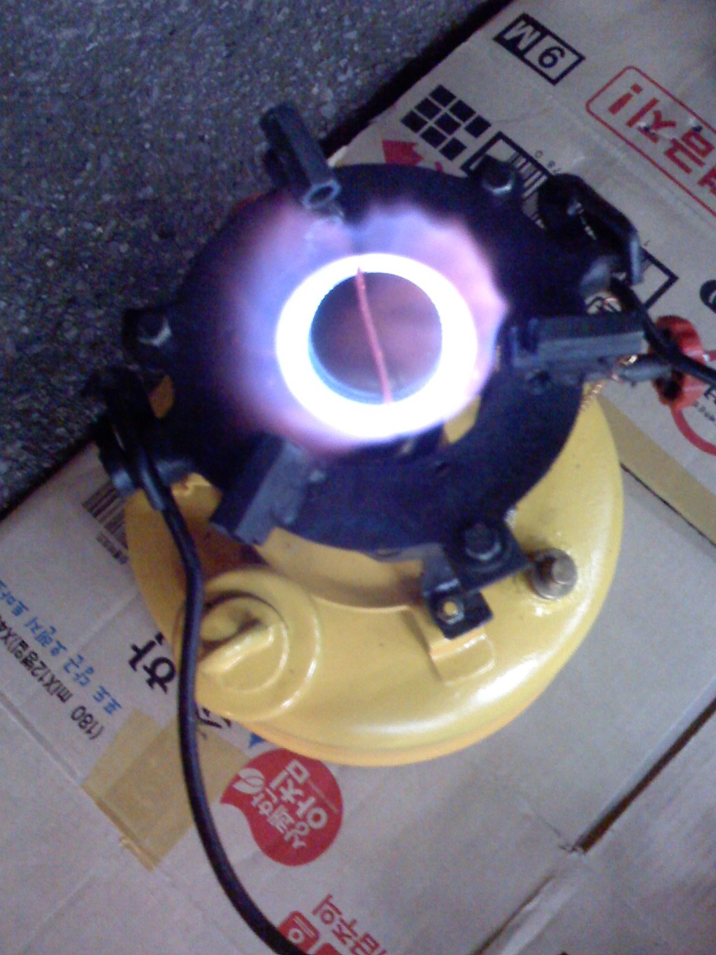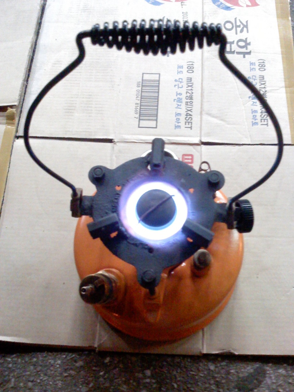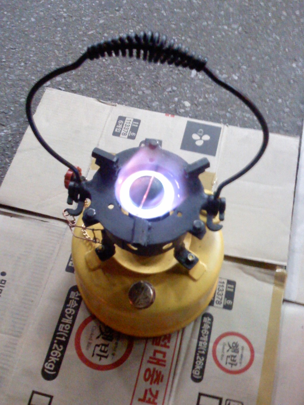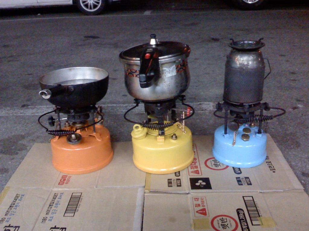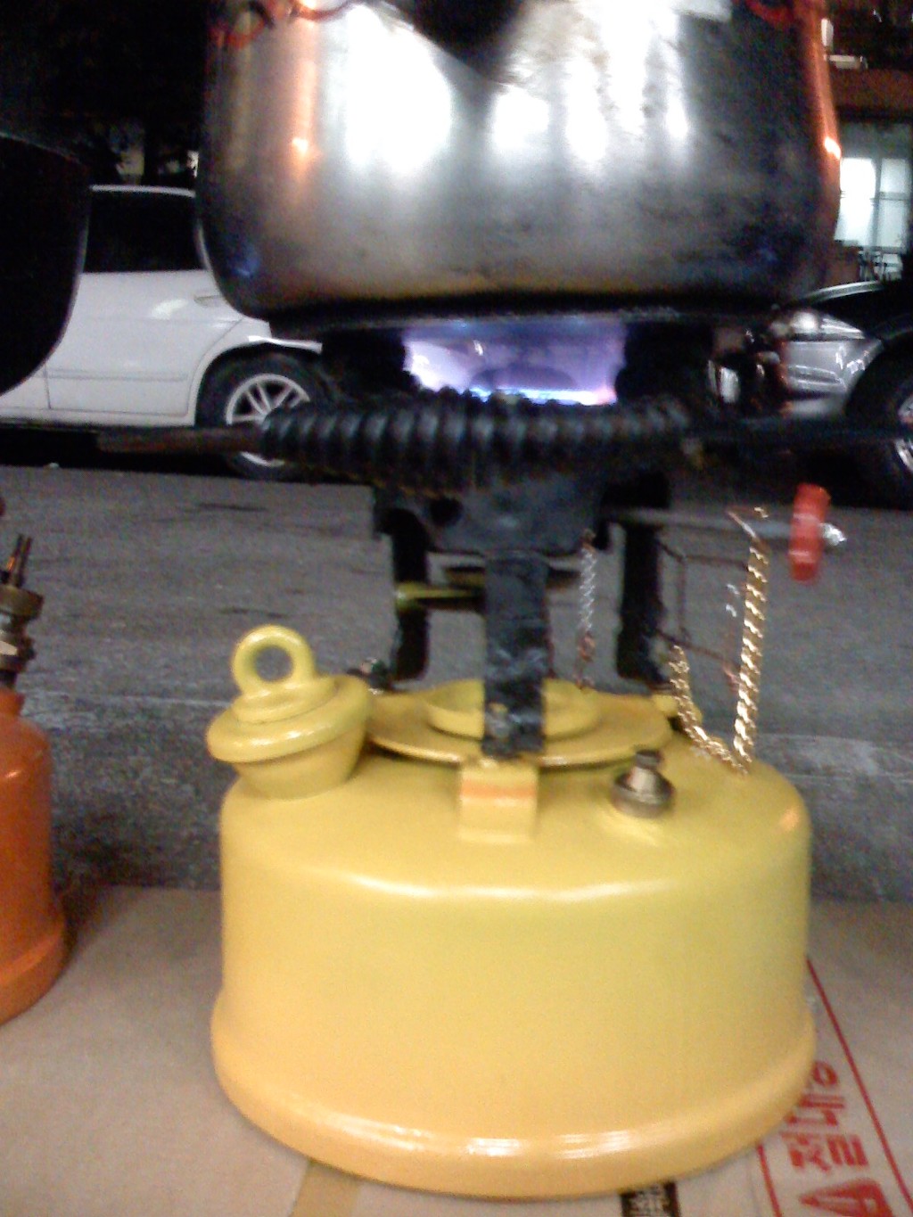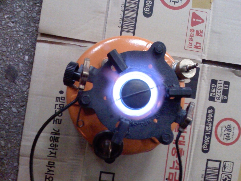 (노랑 버너: 차량타이어의 에어주입 코크를 장착 타이어 에어펌프로 공기주입)