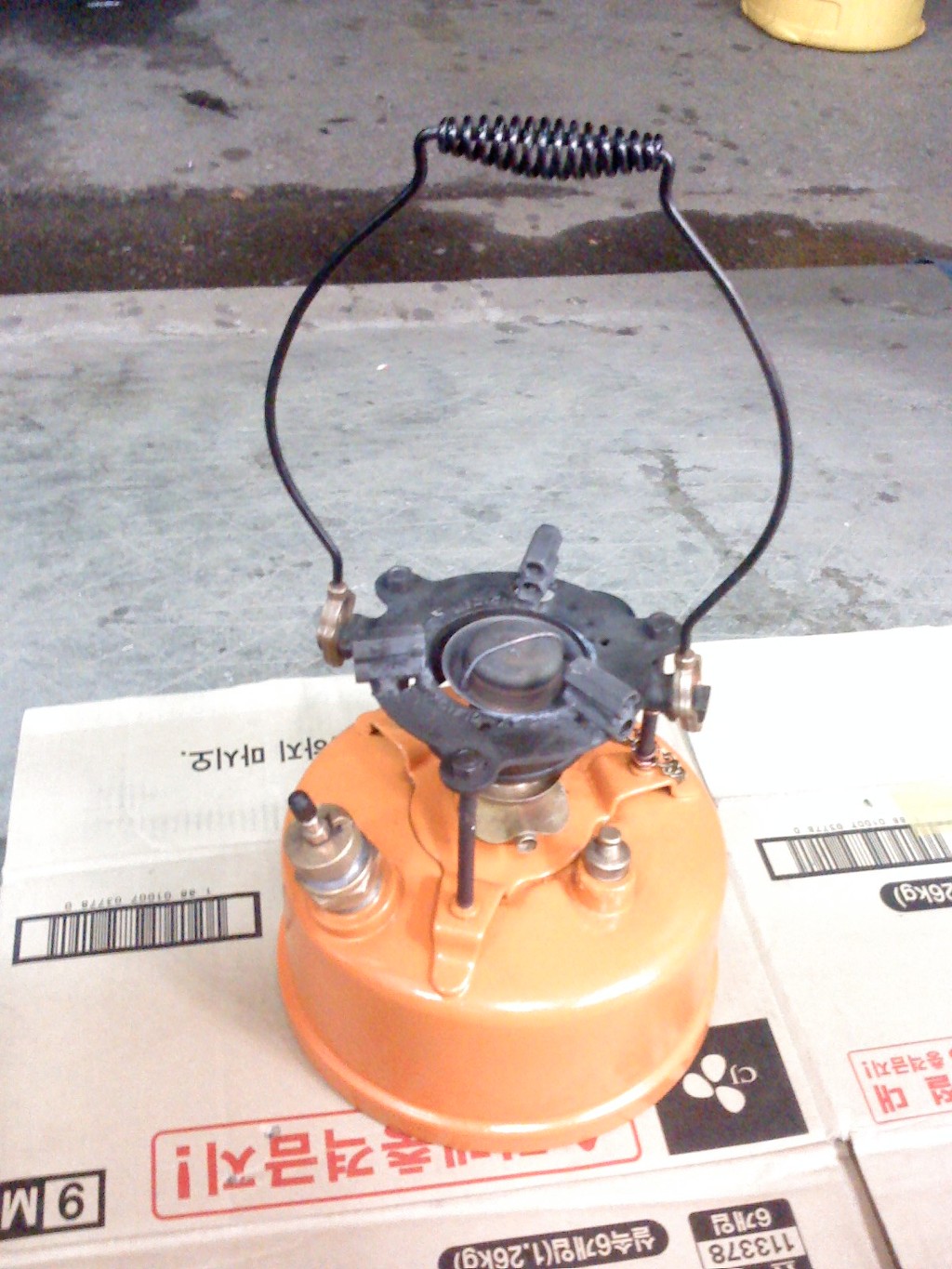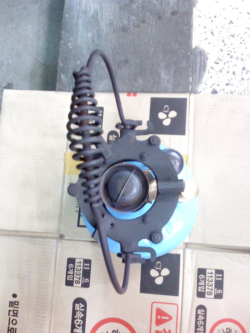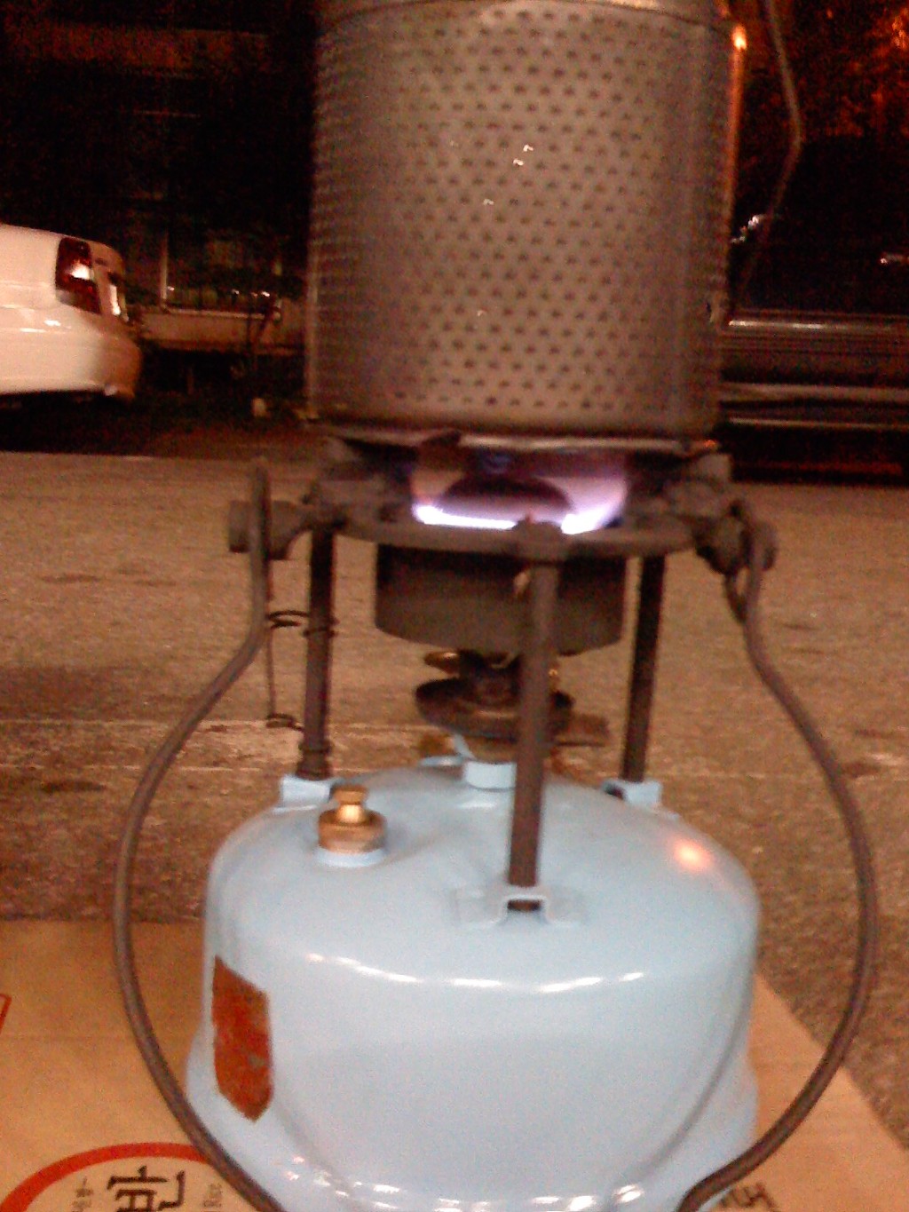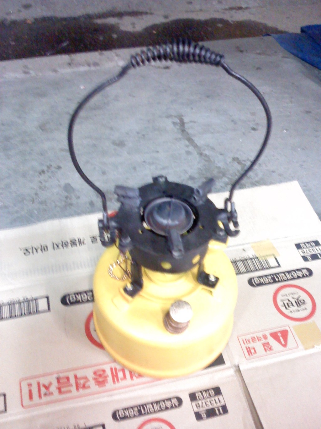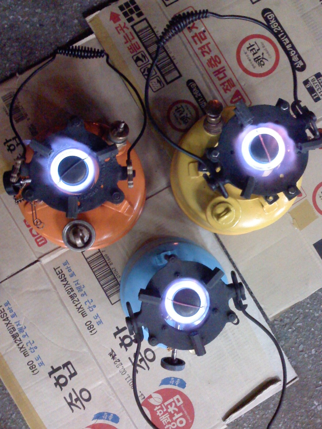 (노랑 버너: 차량타이어의 에어주입 코크를 장착 타이어 에어펌프로 공기주입)