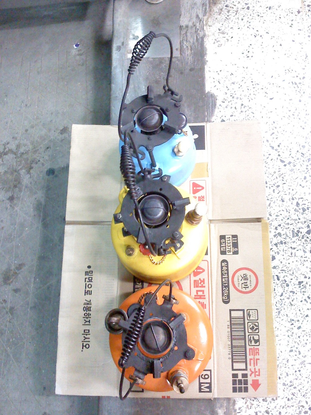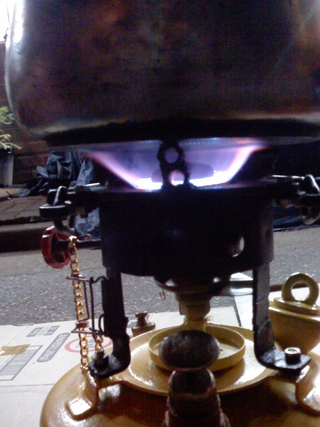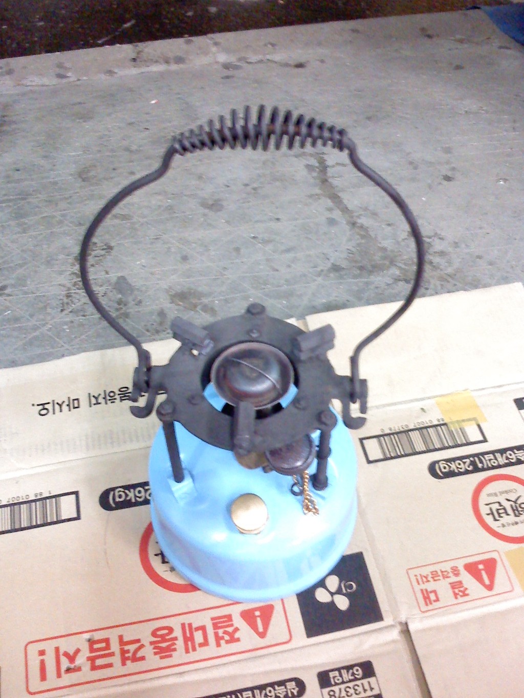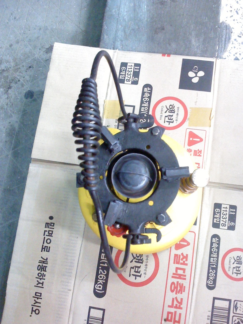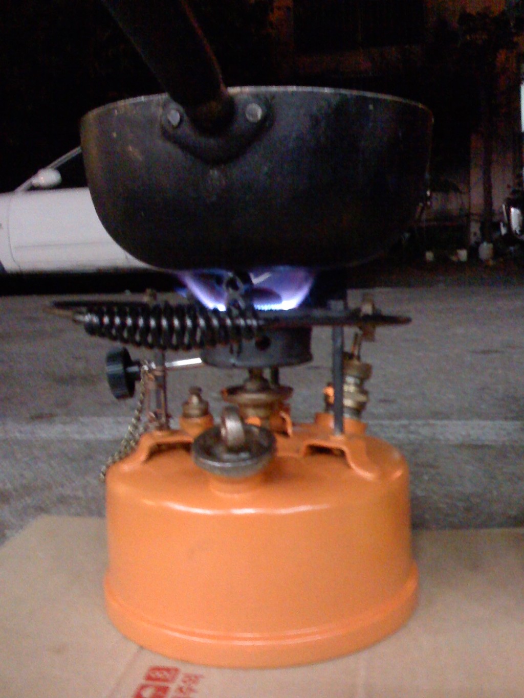 (노랑 버너: 차량타이어의 에어주입 코크를 장착 타이어 에어펌프로 공기주입)