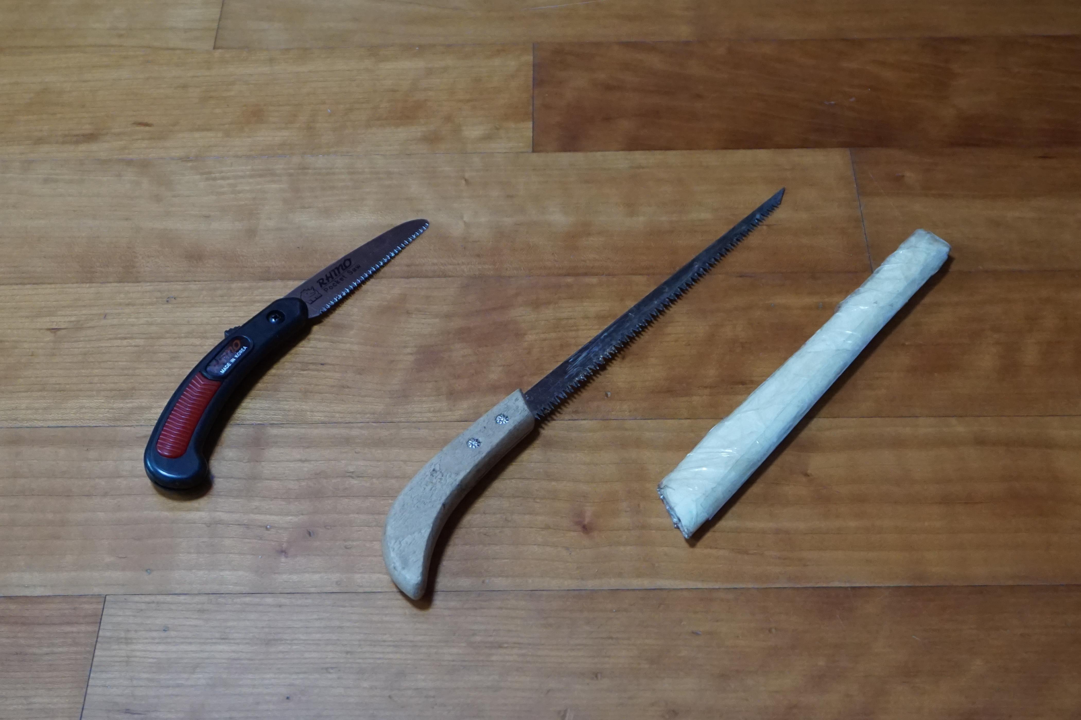 이번에는 무게와 부피를 더 줄이고 싶어 휴대용 접이식 미니 톱을 가져 가지만 10일 이상 장거리가 아니면 사이즈가 크고 자르기 좋은 꼬리 톱(68g)을 주로 가지고 다닙니다. 꼬리 톱 케이스는 제가 달력과 박스 테이프로 만들었습니다. ㅎㅎ