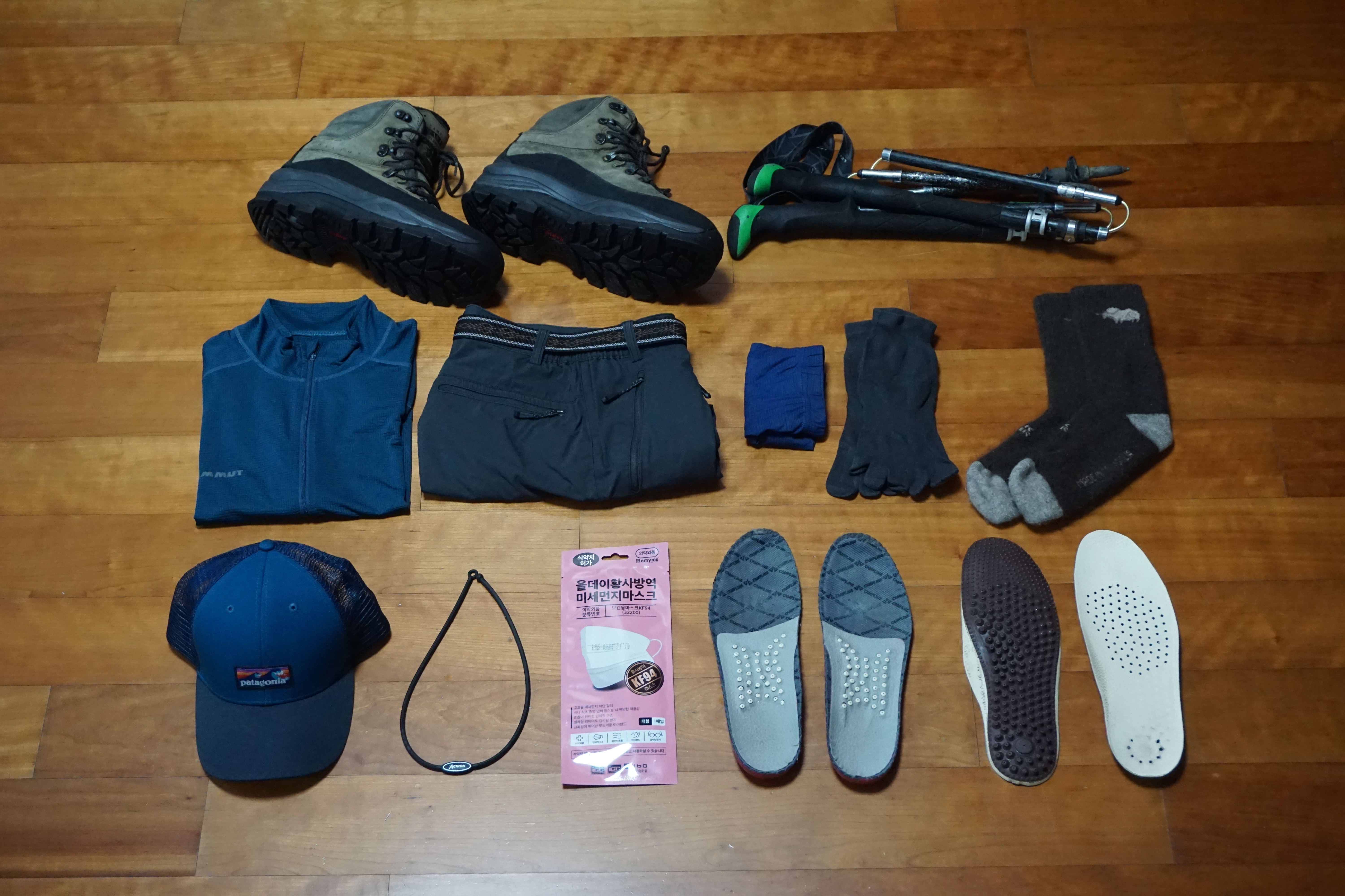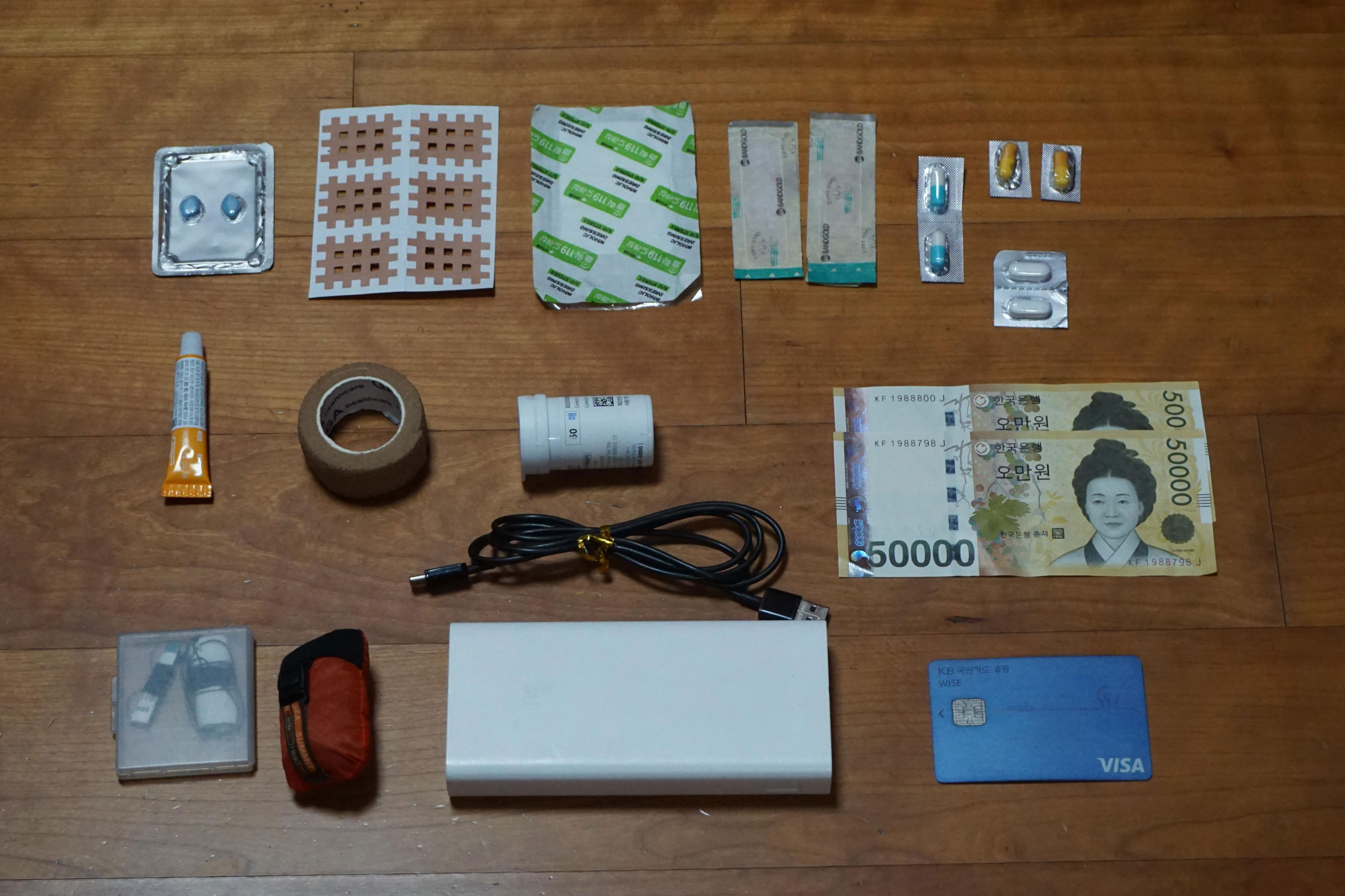 3박 4일을 혼자 간다고 생각하고 경량 준비물과 비상시 필요한 용품과 약품까지 없는 것 없이 이렇게 모두 준비하였기 때문에 혹시 위급한 상황이 생기더라도 대처할 수 있습니다.