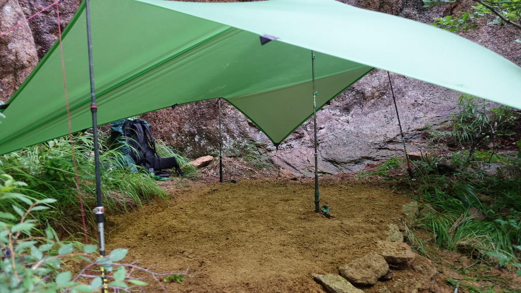 16. 멀티 비비색(350g) – 펼치기만 하면 간단하게 설치가 가능한 간이 텐트로 내부가 넓어 배낭을 이용하여 공간을 확보할 수 있어 움직임이 자유롭고 답답하지 않습니다. 이번에 저 혼자만 간다면 스마트 타프-텐트 하나로 충분하지만 여러 사람과 함께하는 서락 장거리 종주산행 특성상 비박 예정지까지 가지 못하고 비박지가 없는 곳에서 흩어져서 비박을 해야 할 경우나 예정된 비박지에 도착해도 다른 사람이 자리를 차지하고 있고 비박지가 협소하여 서로 붙어서 비박을 해야 하는 경우가 있어 비상용으로 휴대합니다.